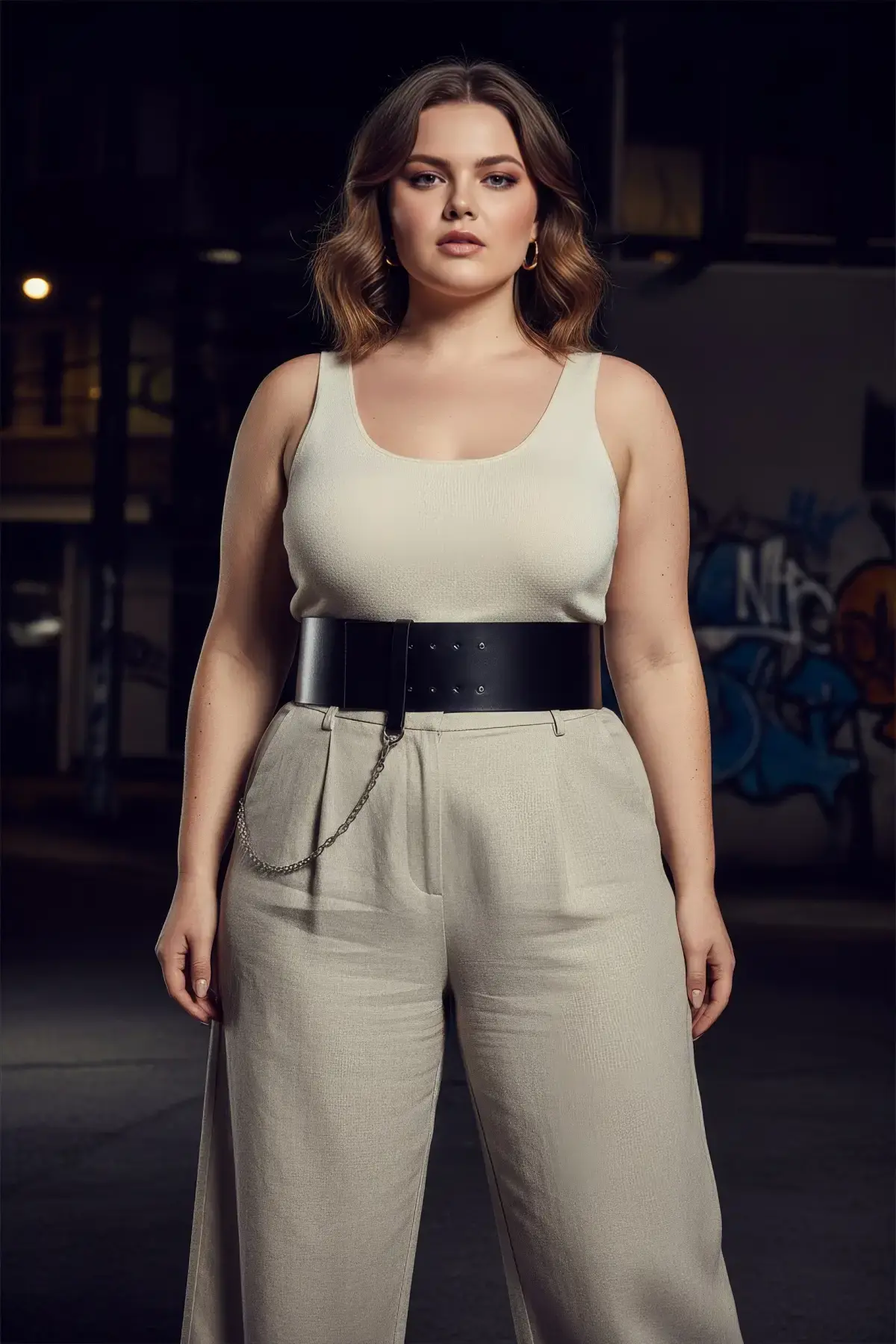 Büyük Beden Siyah Kadın Kemer Zincir Detaylı Harness Tasarım - APFT620