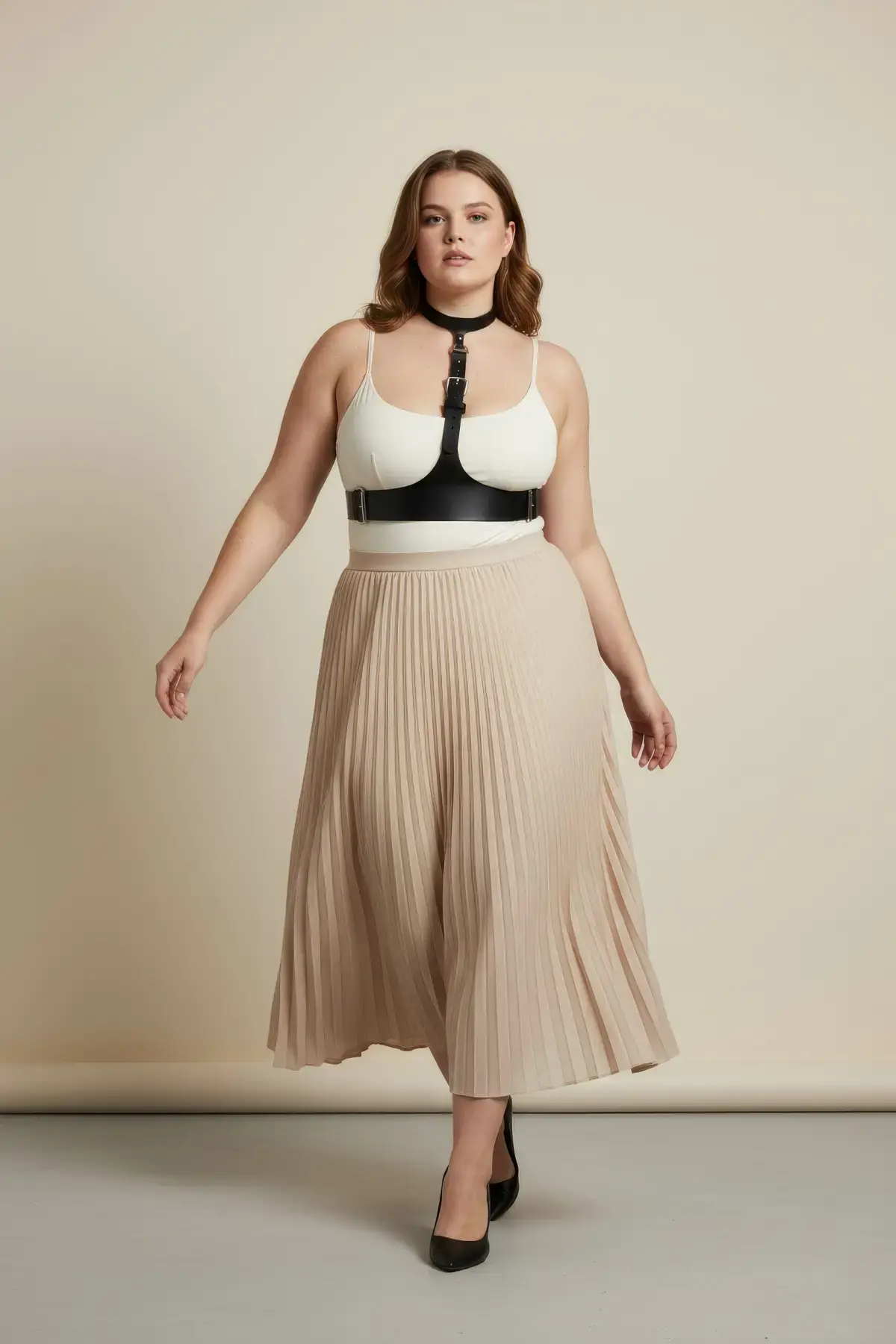 Büyük Beden Taba Kadın Deri Korse Kemer Askılı Vücut Aksesuarı - APFT622