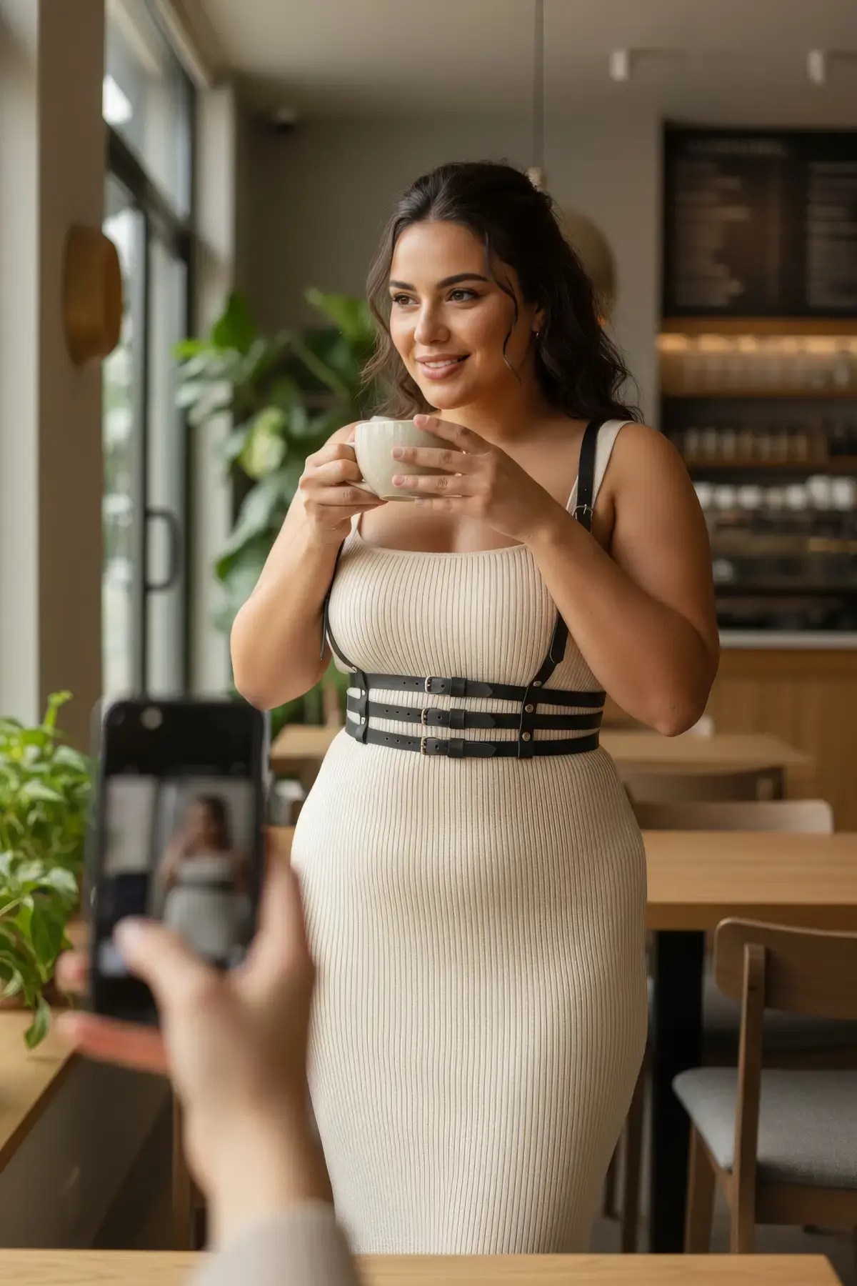 Büyük Beden Siyah Kadın Kemer Üç Bantlı Korse Tarzı Deri Harness - APFT178