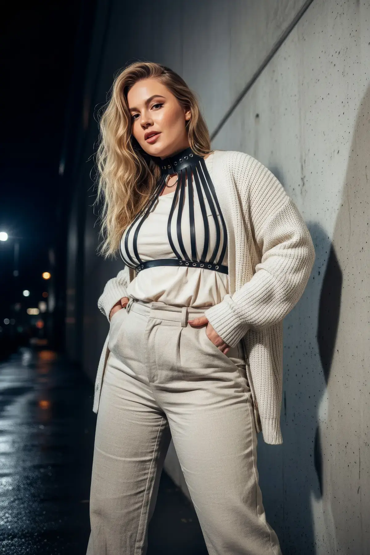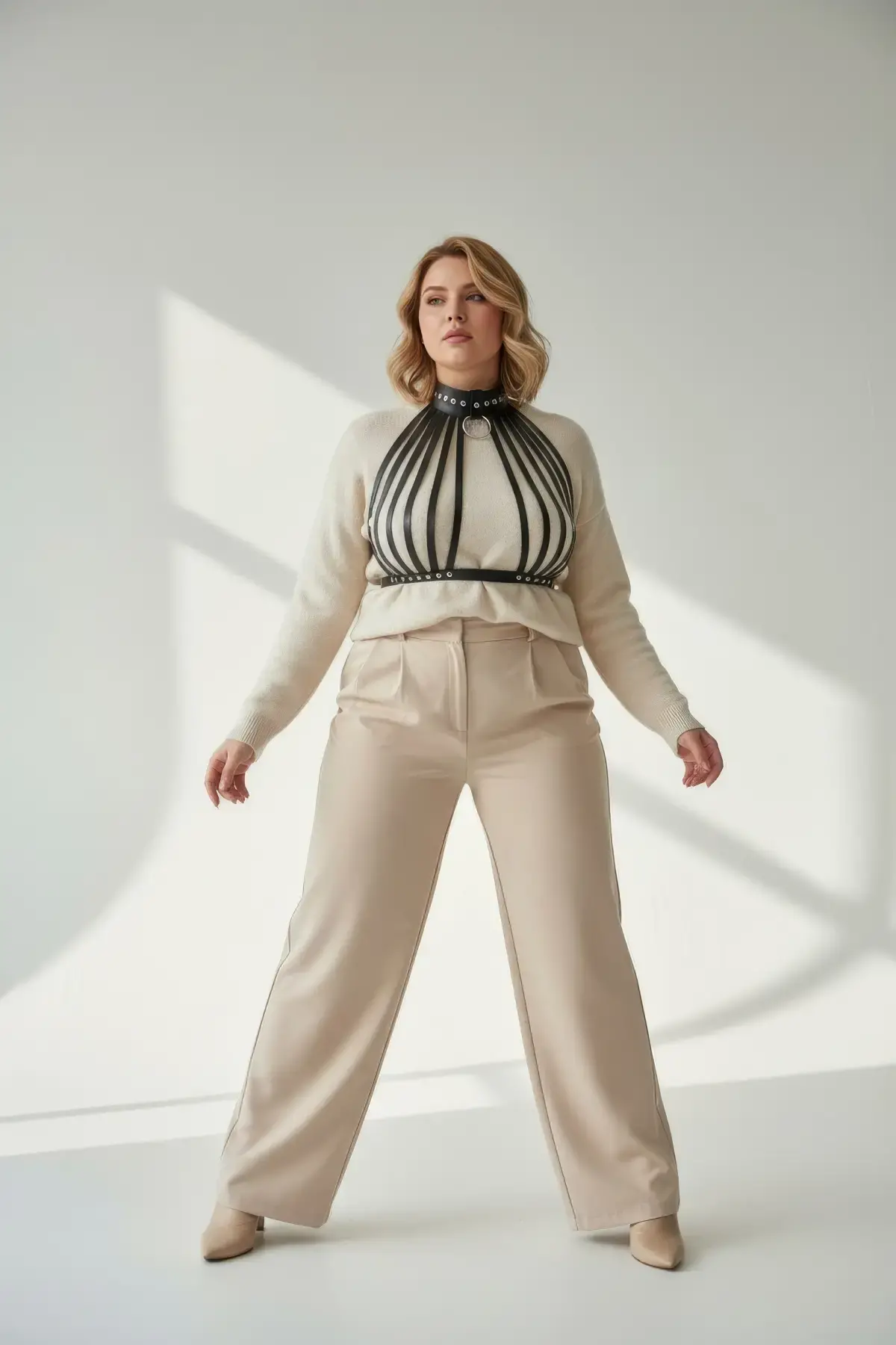 Büyük Beden Siyah Kadın Kemer Deri Vücut Harness Kombin Tamamlayıcı - APFT819