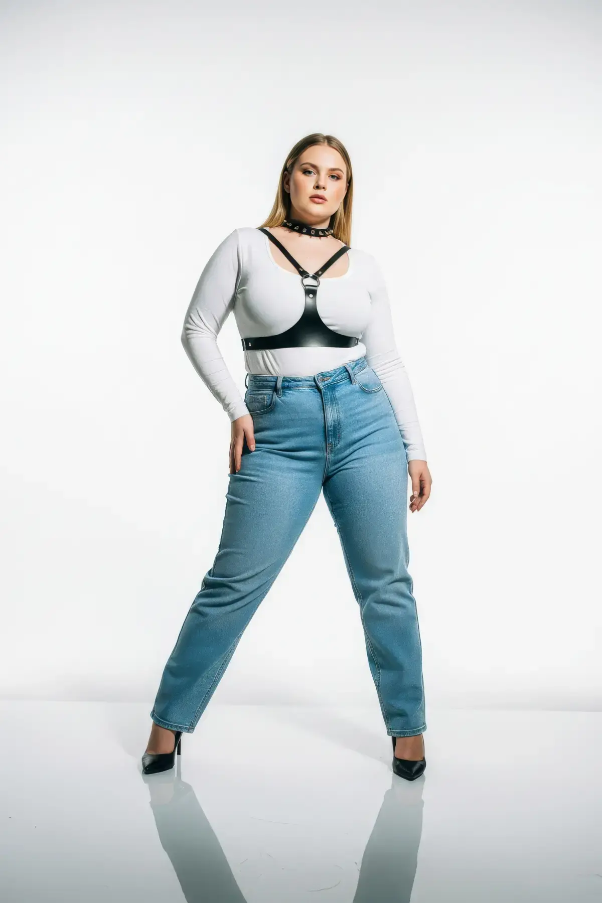 Büyük Beden Siyah Kadın Kemer Zımba Detaylı Deri Harness Vücut Aksesuarı - APFT1299