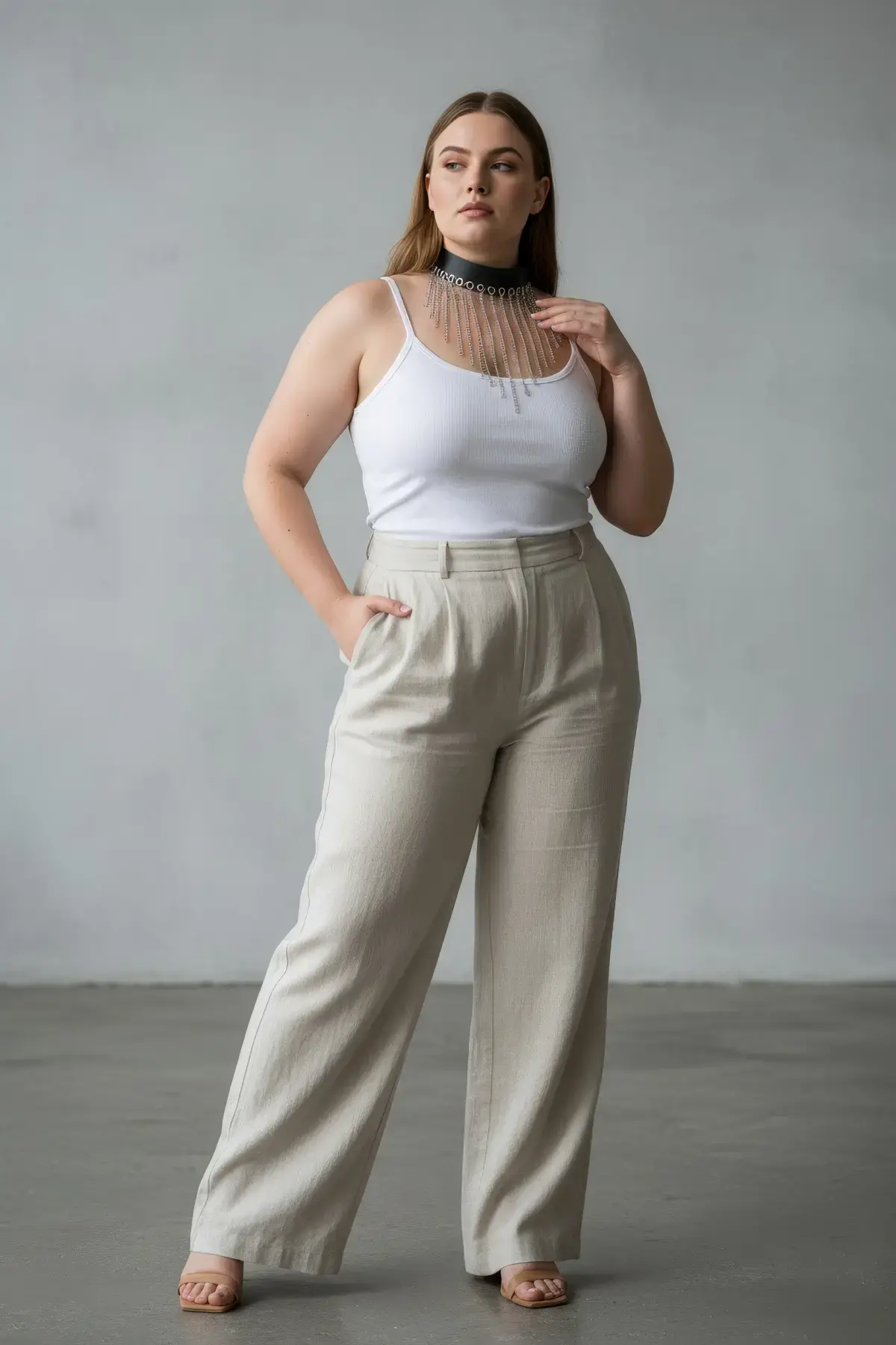 Büyük Beden Siyah Kadın Kemer Zincir Detaylı Maksimalist Tasarım - APFT629