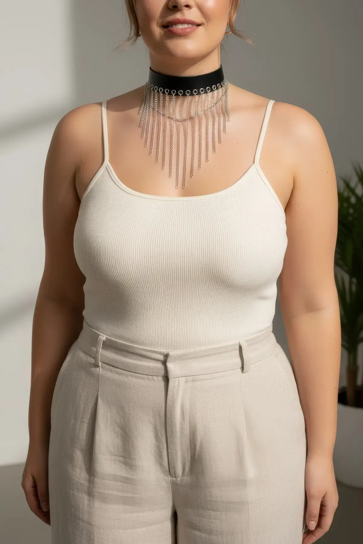 Büyük Beden Siyah Kadın Deri Harness Takım Zincir ve Halka Detaylı - APFT1384
