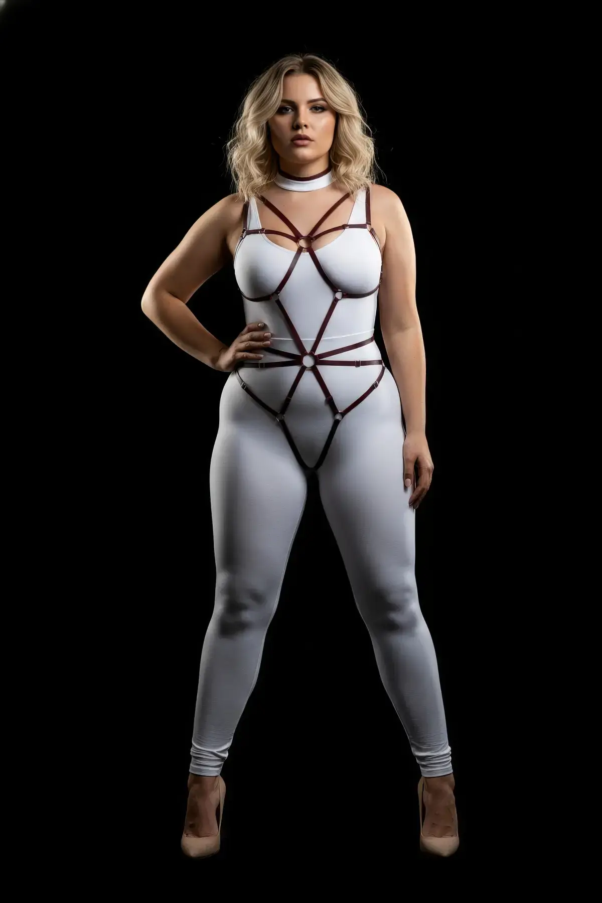 Büyük Beden Kırmızı Kadın Jartiyer Harness Deri Görünümlü Vücut Kombini - APFT242