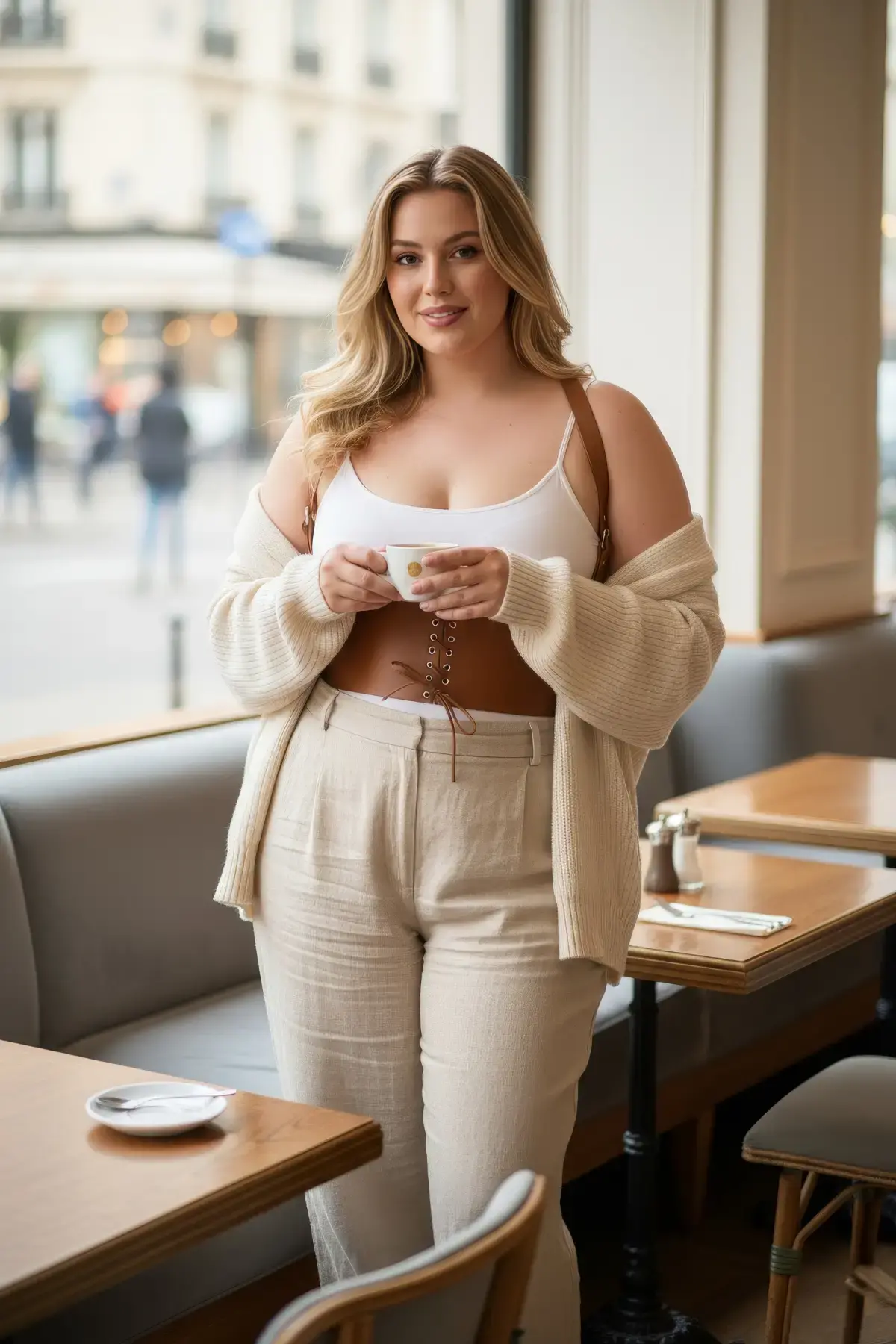 Büyük Beden Taba Kadın Deri Kemer Omuz Askılı Bağcıklı Korse Tasarım - APFT855