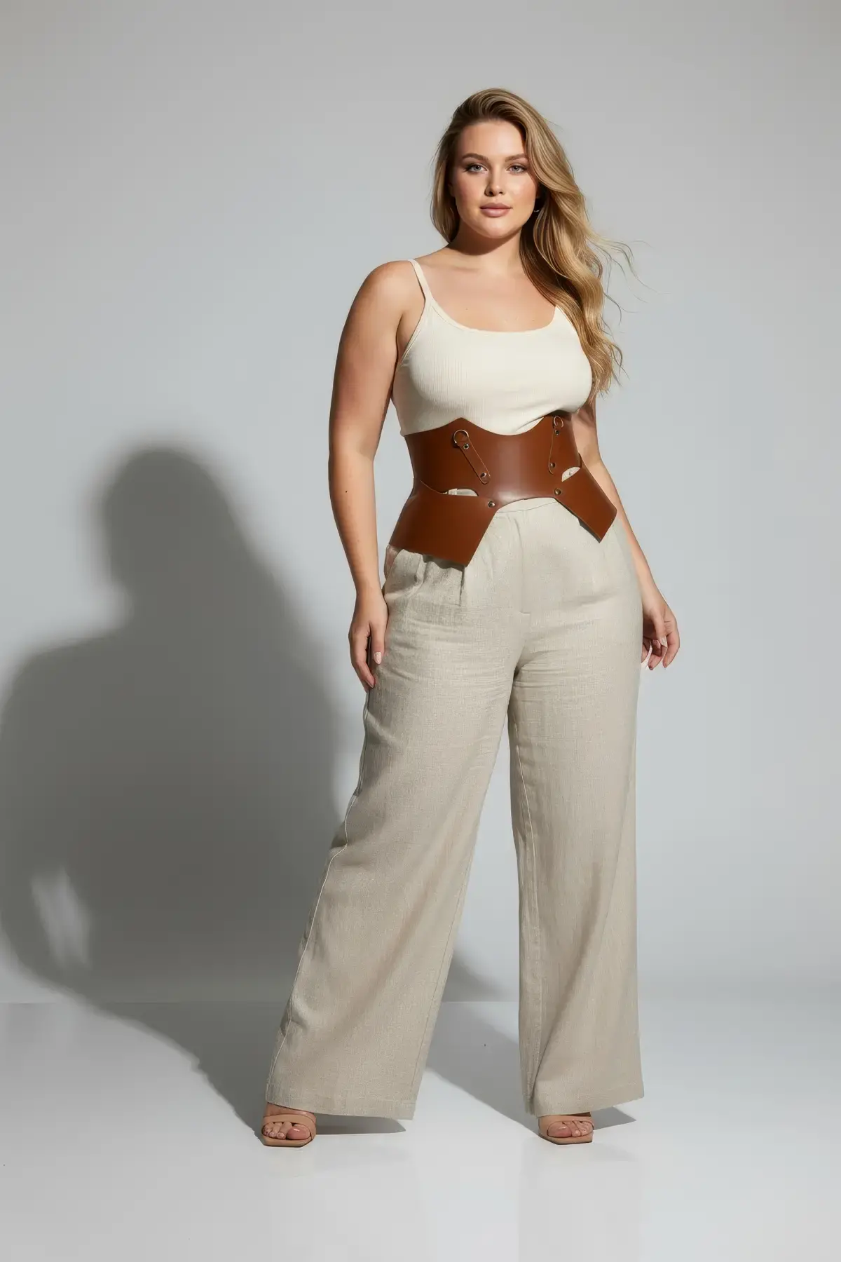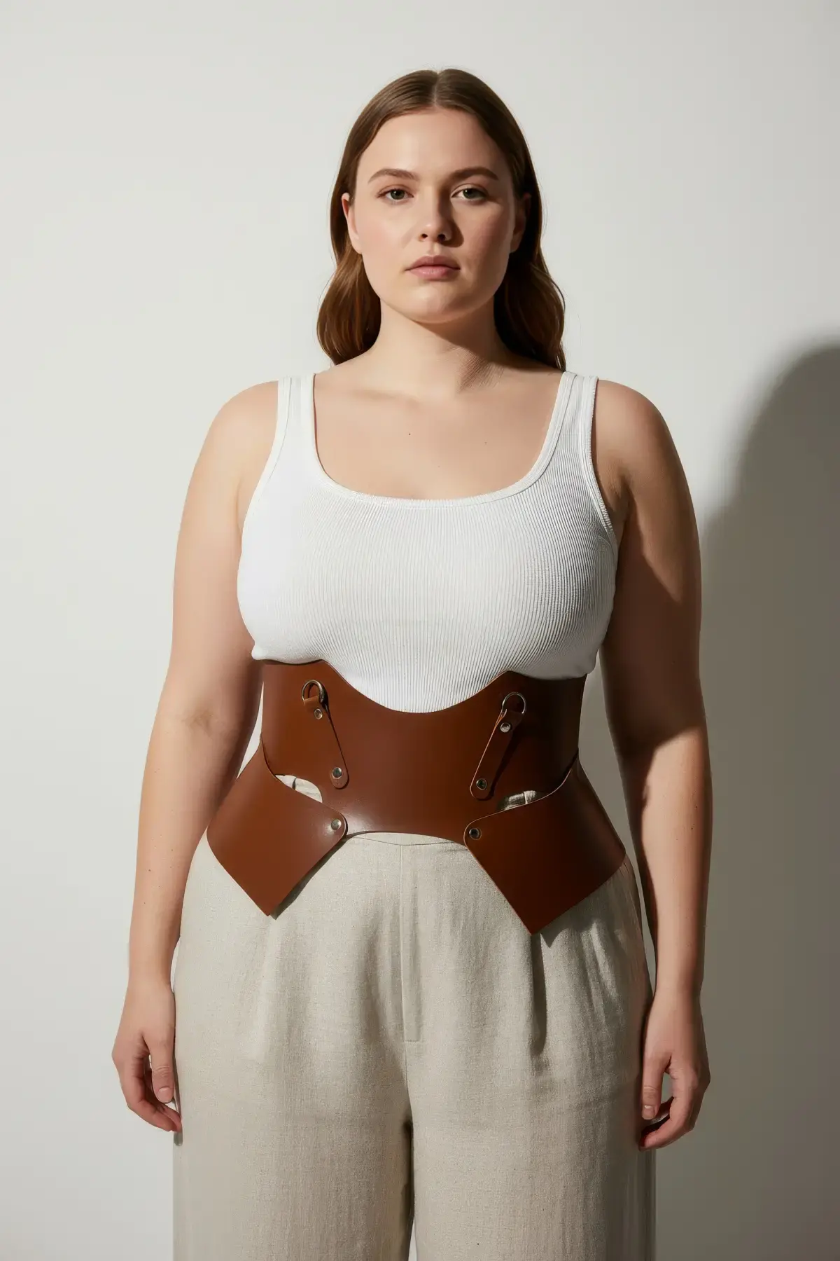 Büyük Beden Taba Kadın Kemer Geniş Korse Stil Deri Kombin Tamamlayıcı - APFT619