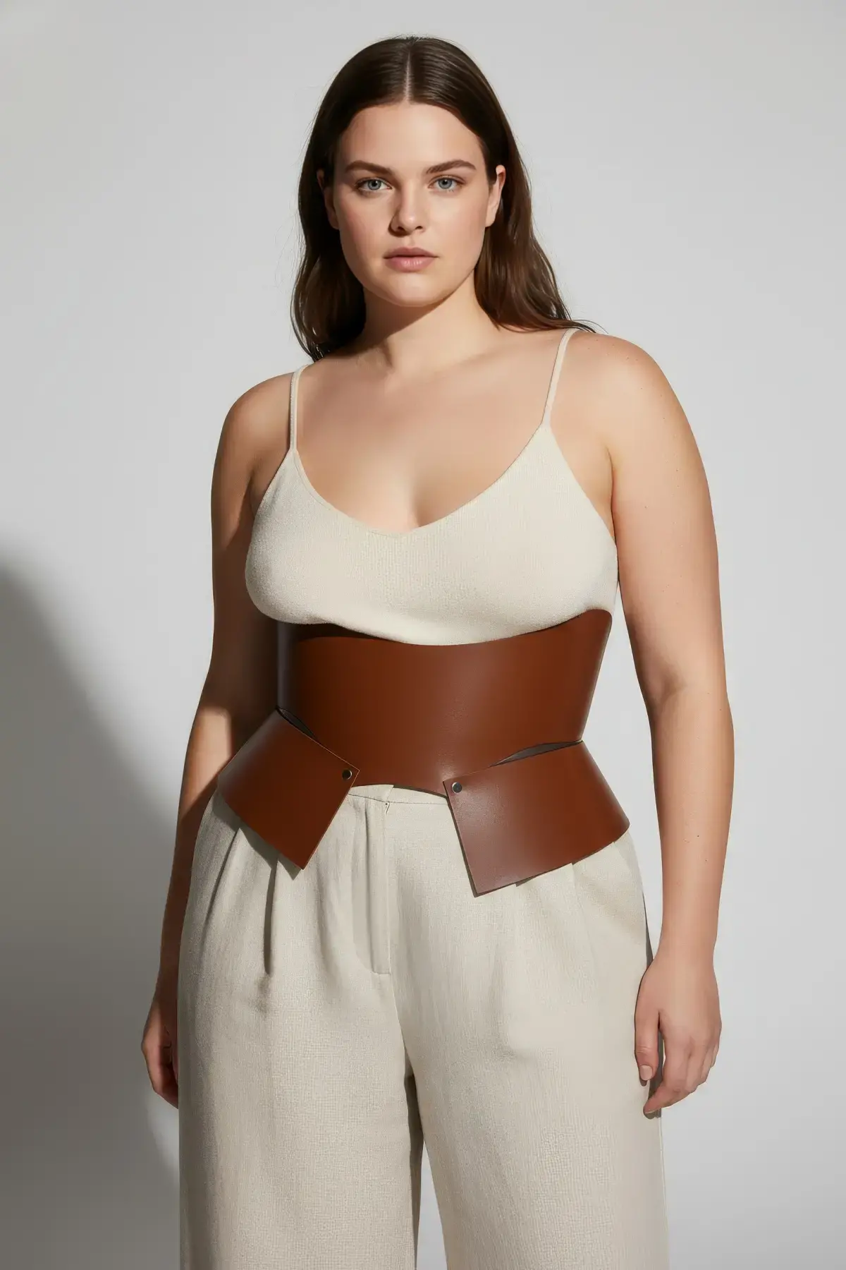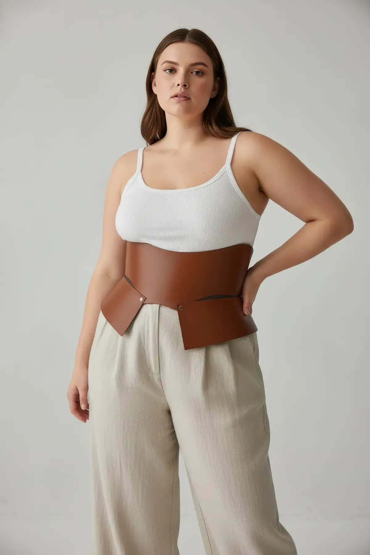 Büyük Beden Taba Kadın Deri Korse Kemer Askılı Vücut Aksesuarı - APFT622