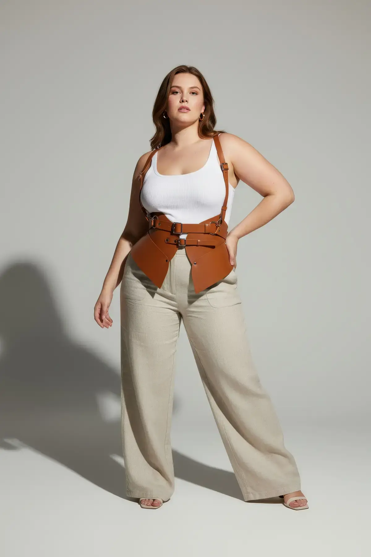 Büyük Beden Taba Kadın Kemer Omuz Askılı Korse Tasarım - APFT616