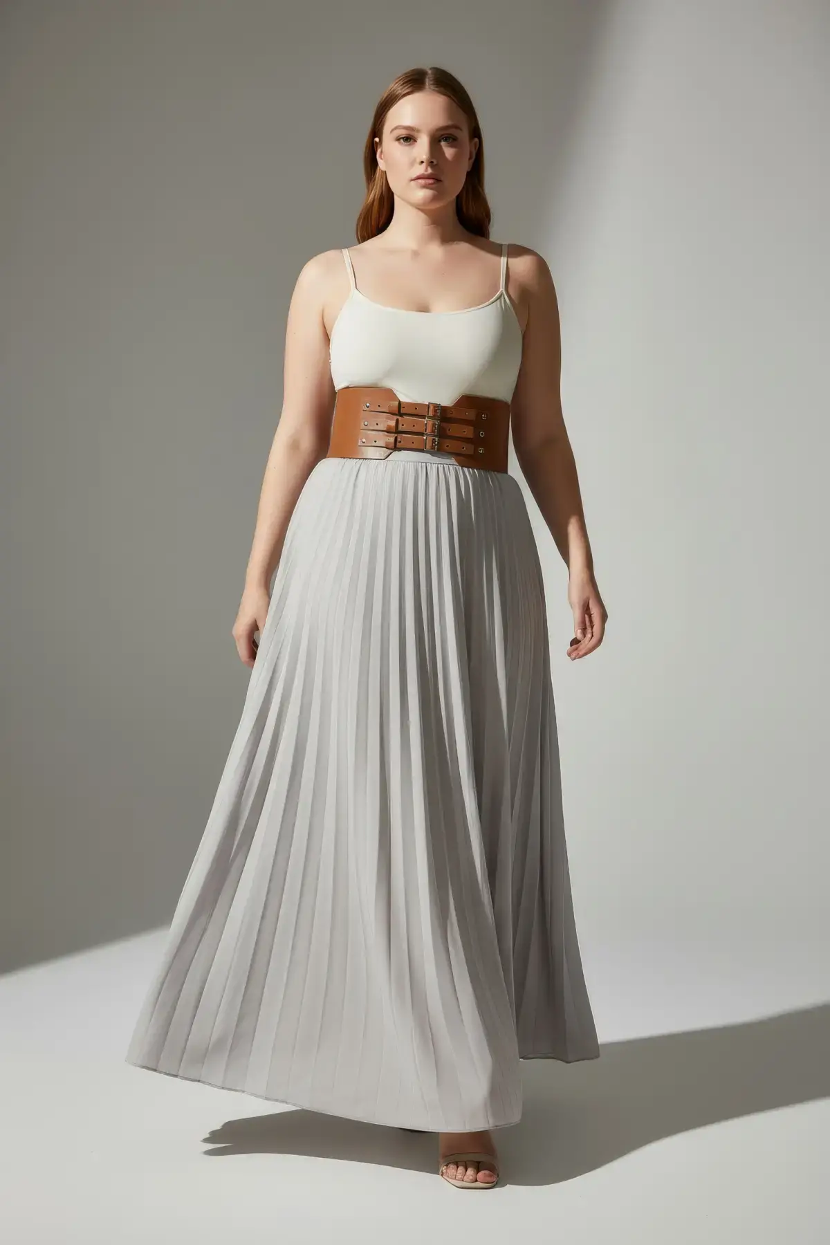 Büyük Beden Taba Kadın Kemer Üç Tokalı Geniş Korse Bel Vurgulayıcı - APFT618
