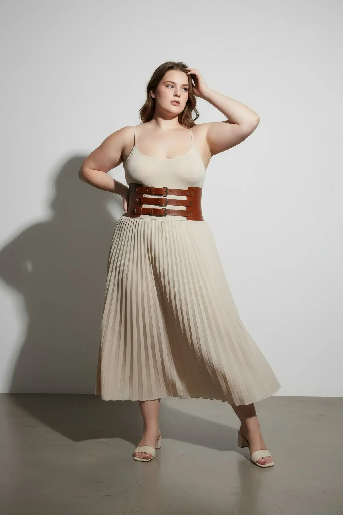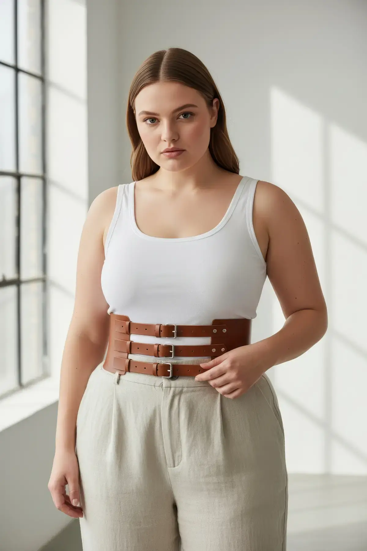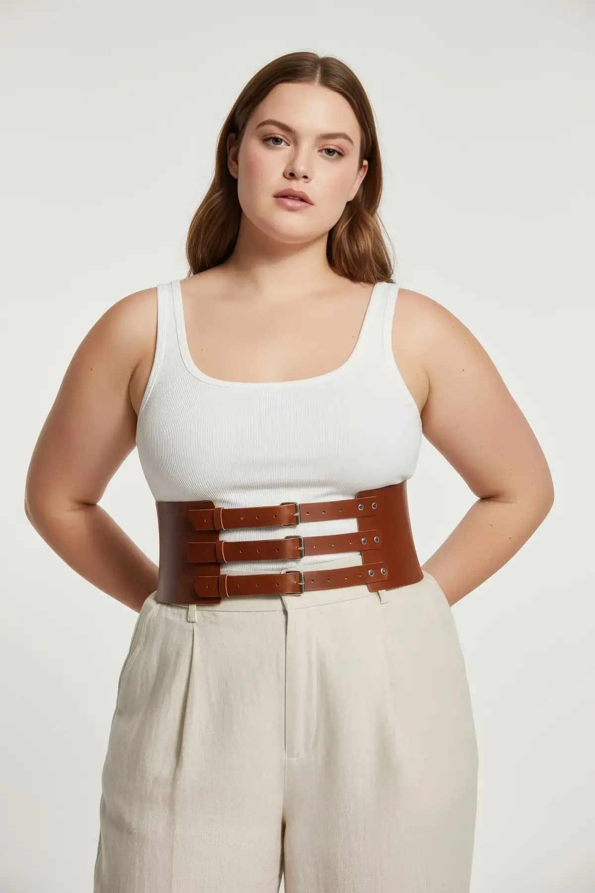 Büyük Beden Taba Kadın Kemer Üç Tokalı Korse Stil Bel Vurgulayıcı - APFT624