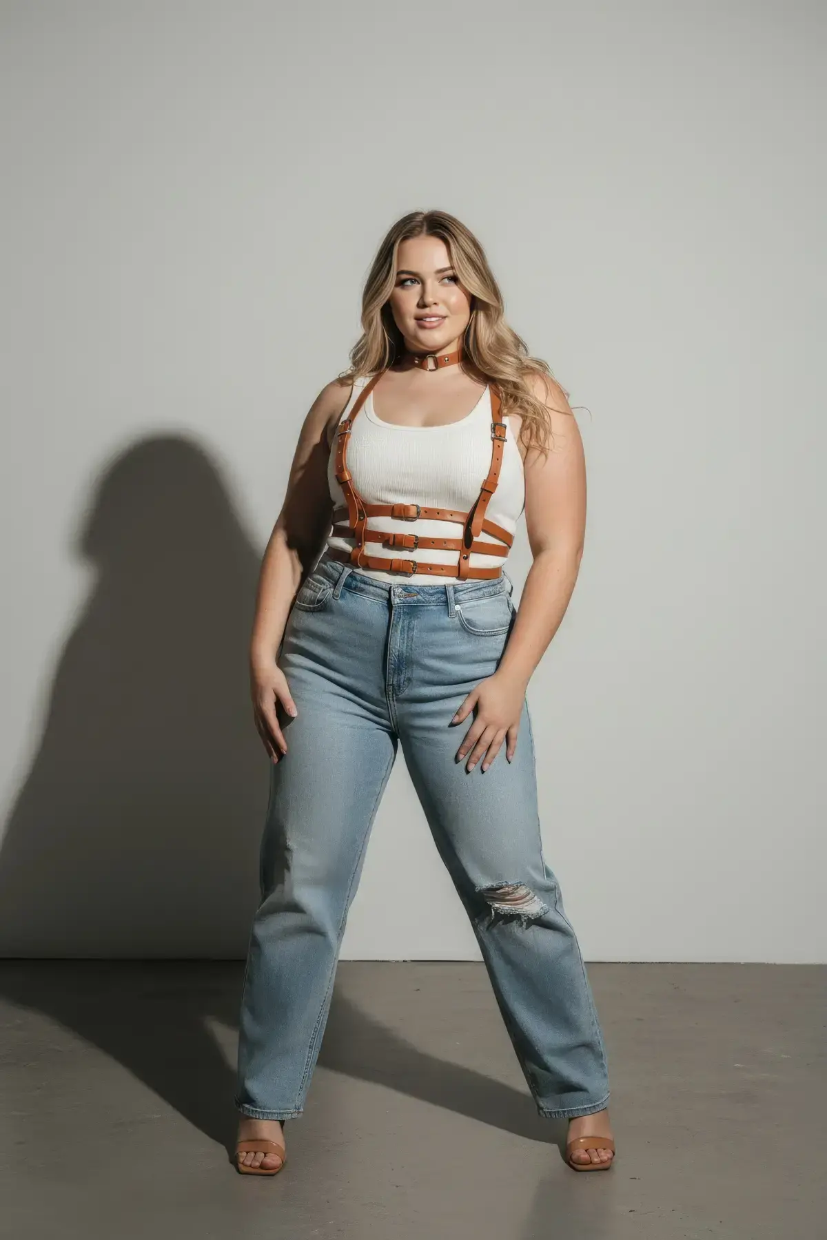 Büyük Beden Taba Kadın Kemer Vücut Aksesuarı Çoklu Bantlı Estetik Tasarım - APFT615