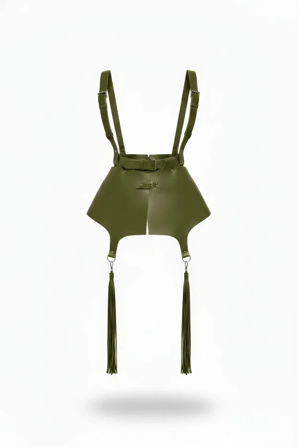 Haki Etek Deri Omuz Detaylı Etek Püsküllü - APFT787