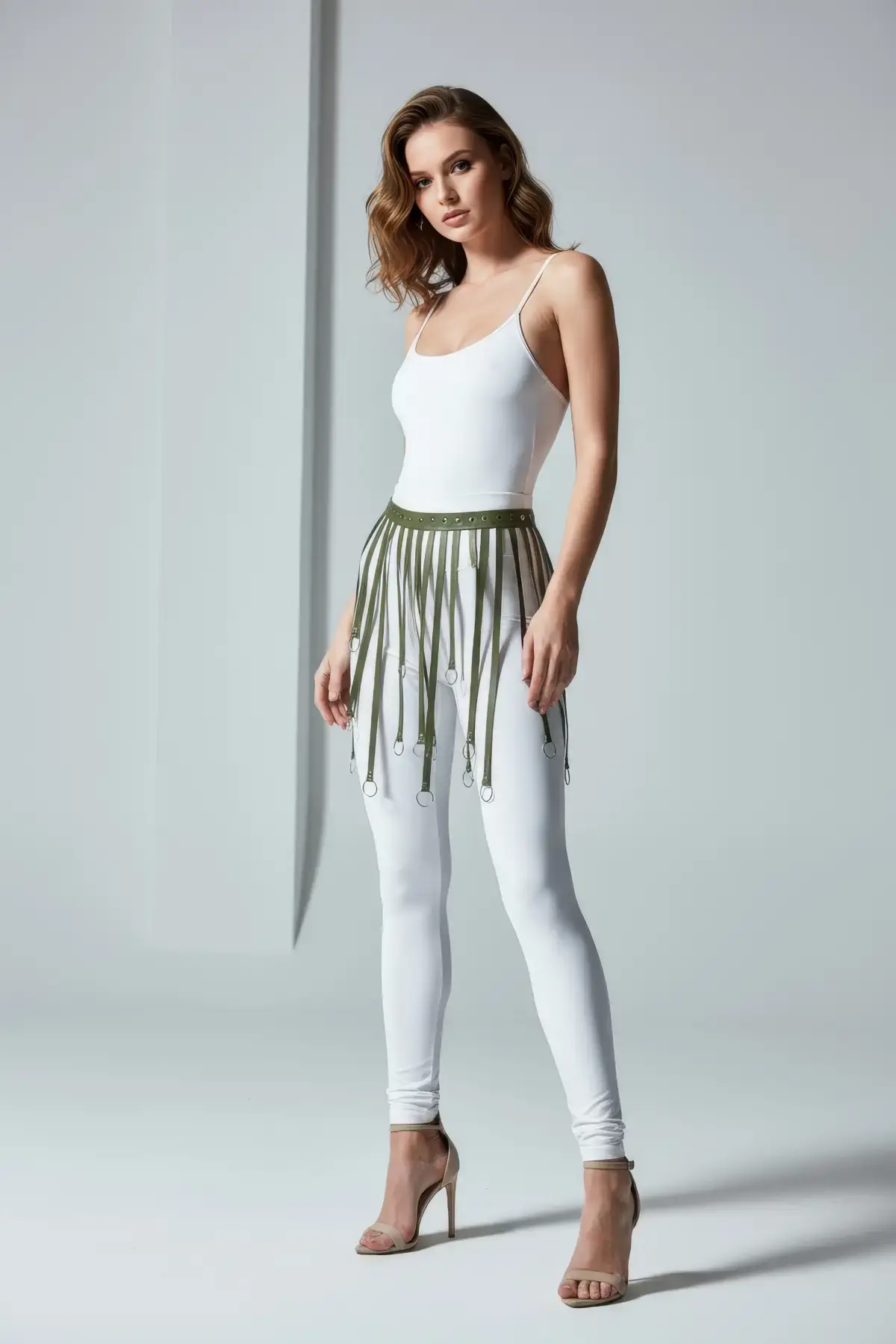 Haki Kadın Kemer Panelli Püskül Detaylı Deri Bel Aksesuarı - APFT985