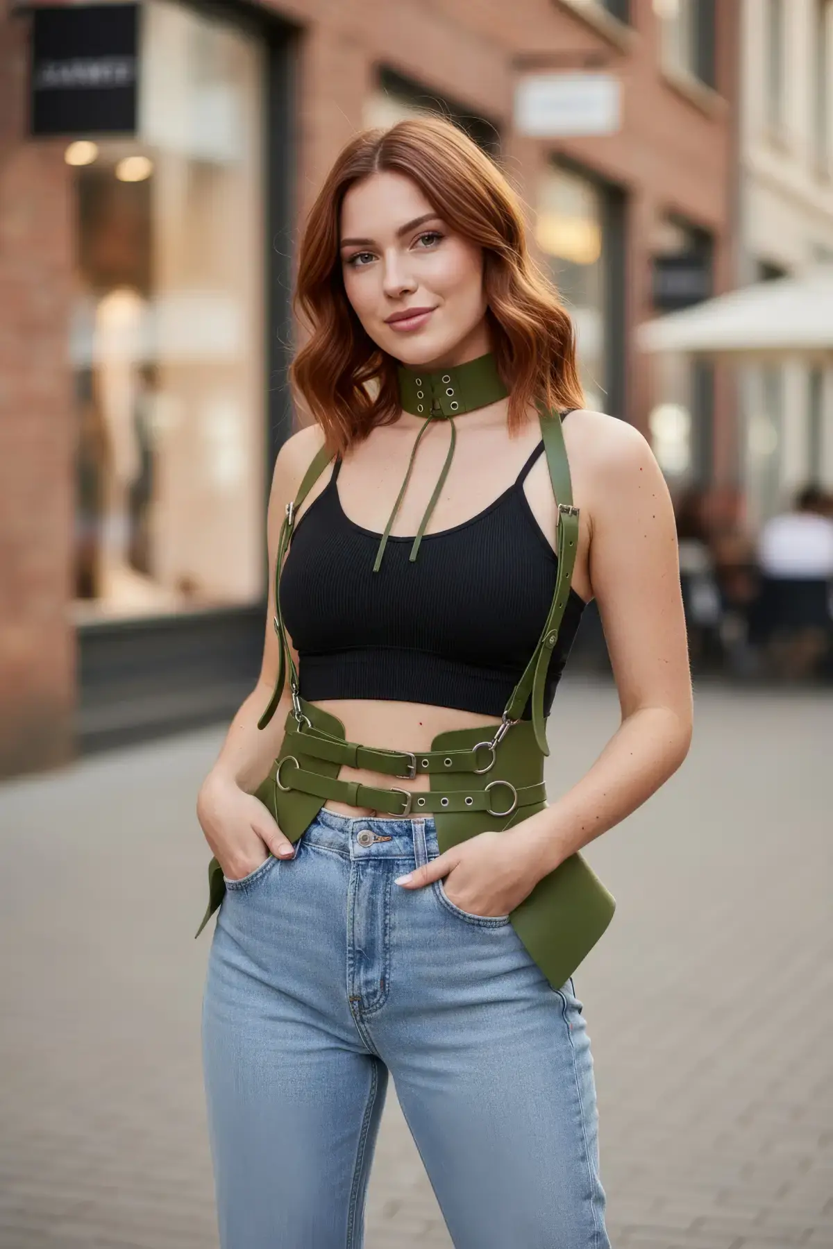 Haki Kadın Kemer Deri Korse Tipi Omuz Detaylı - APFT622