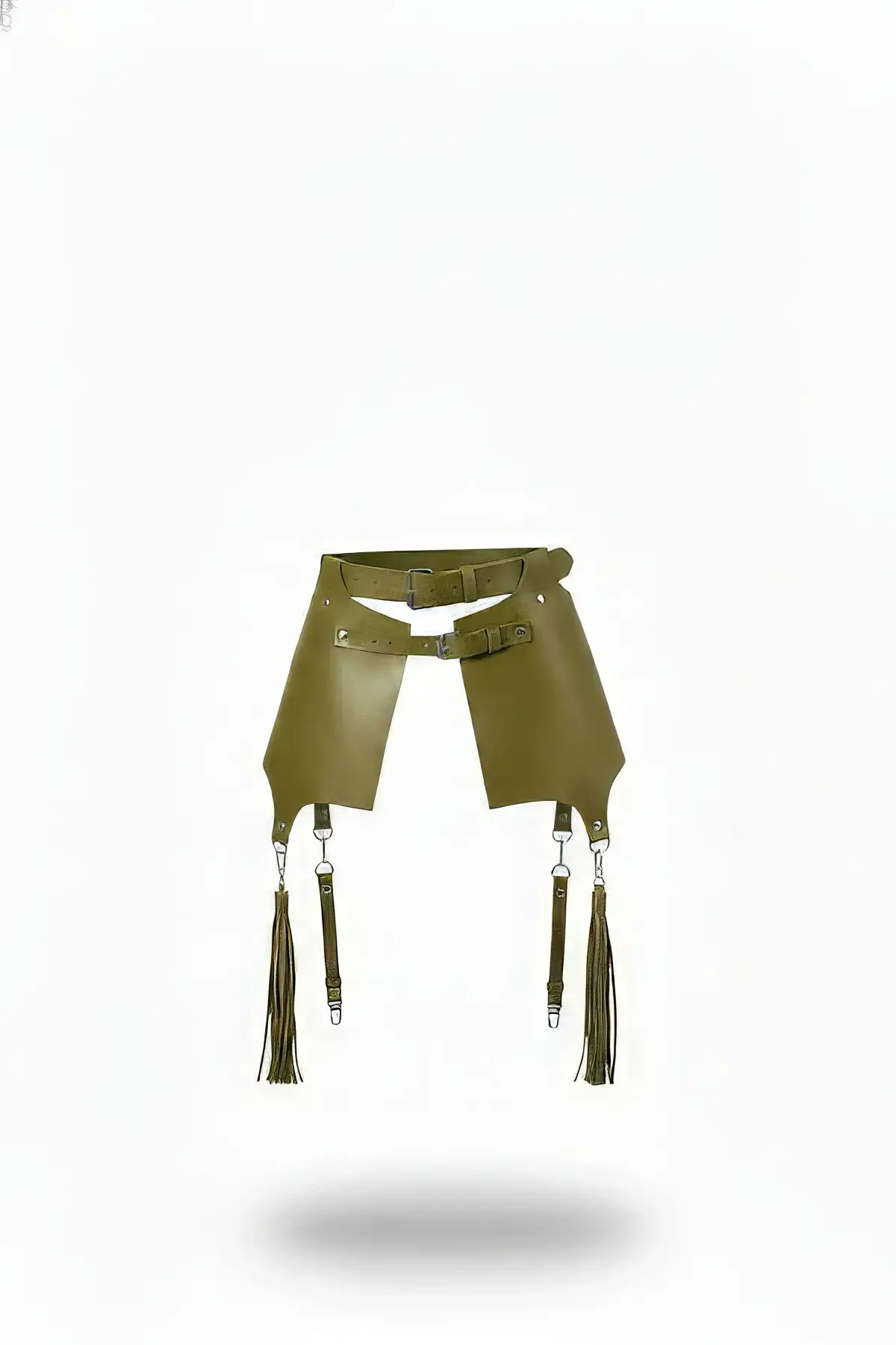Haki Kadın Kemer Deri Panelli Püskül Detaylı Bel Aksesuarı - APFT985