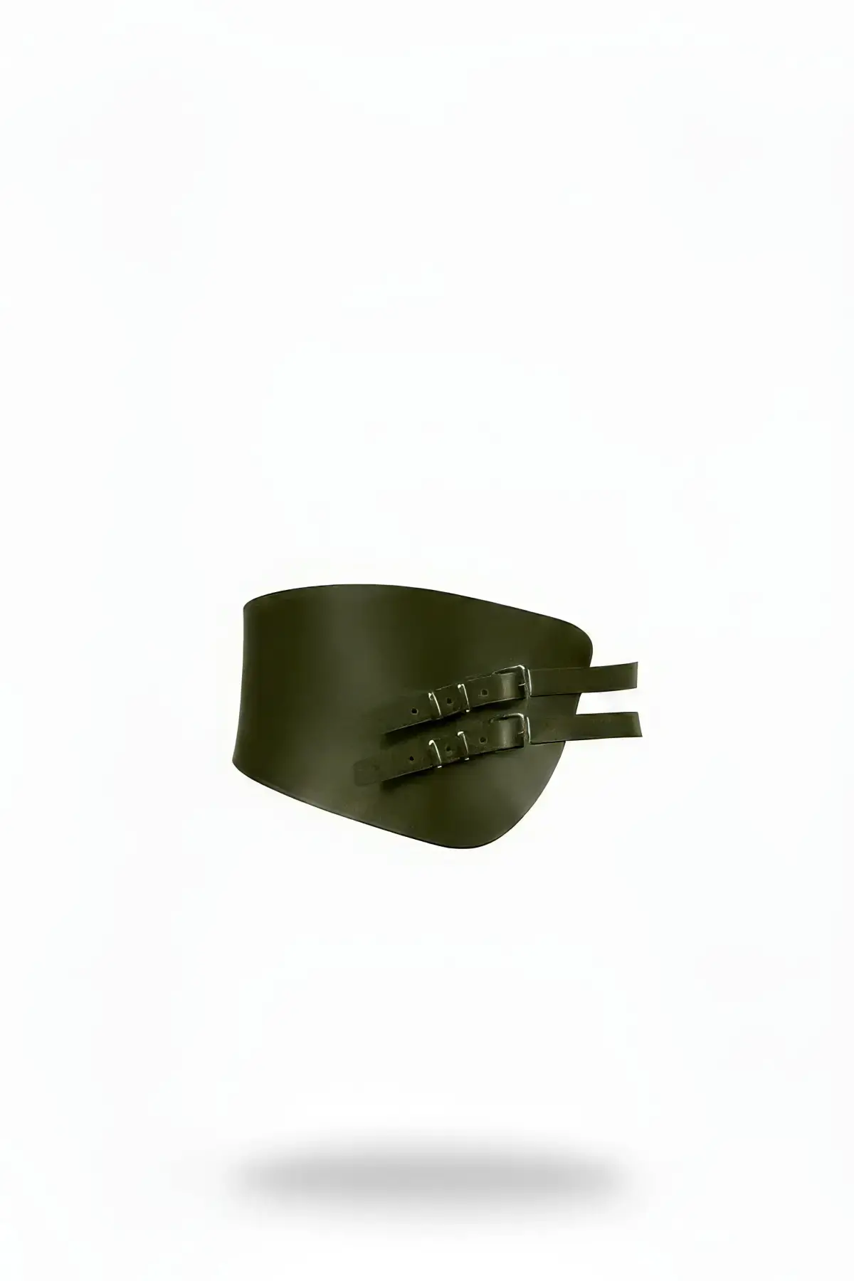 Haki Kadın Kemer Kalın Çift Tokalı Geniş Bel Aksesuarı - APFT604