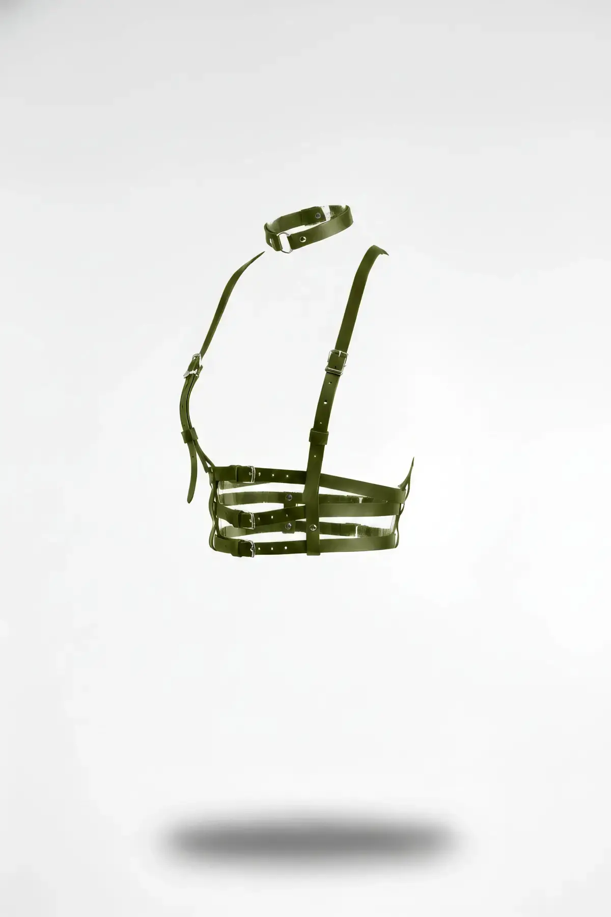 Haki Kadın Kemer Suni Deri Çoklu Şeritli Boyun Detaylı - APFT615
