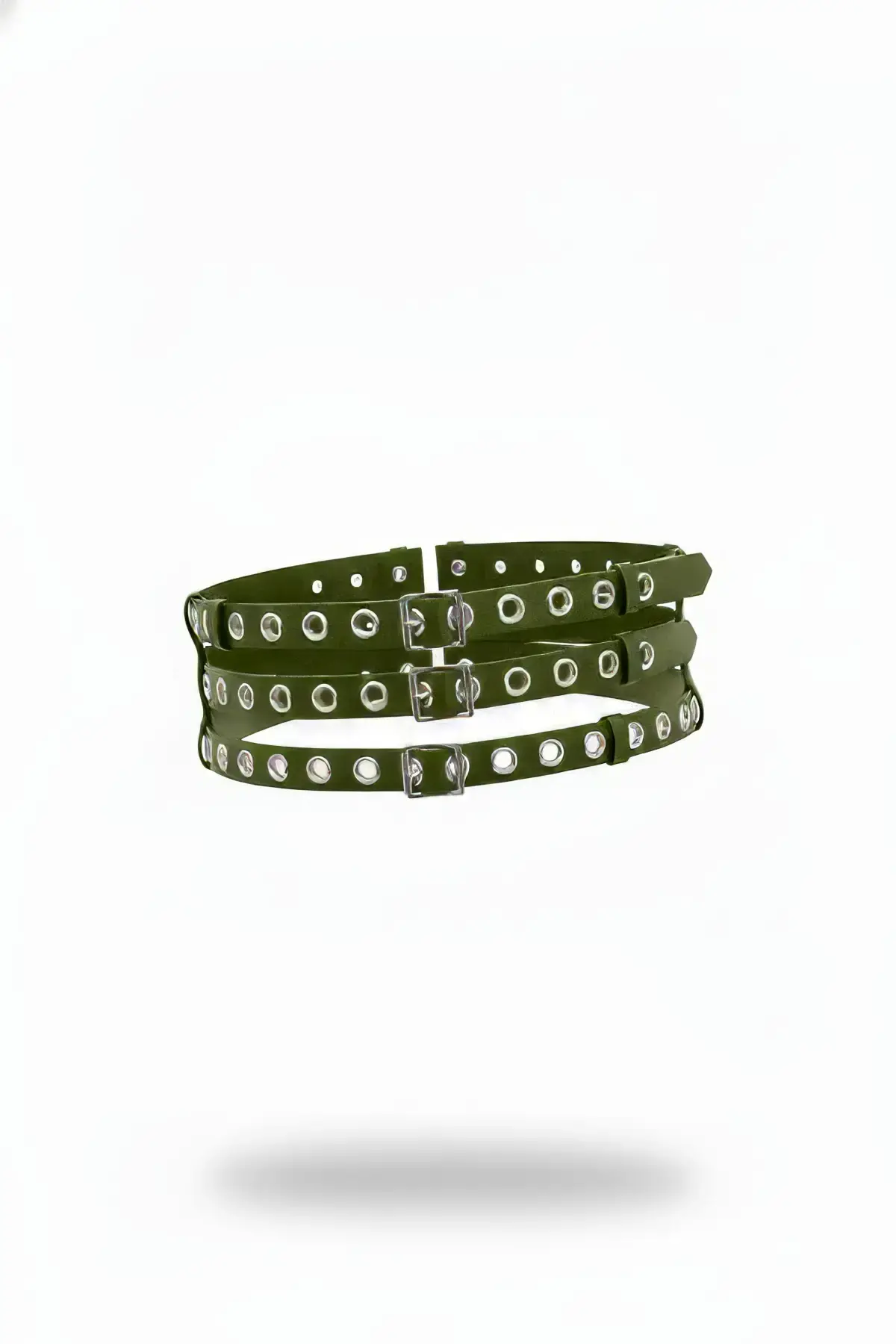 Haki Kadın Kemer Üç Katlı Metal Halkalı Geniş - APFT641