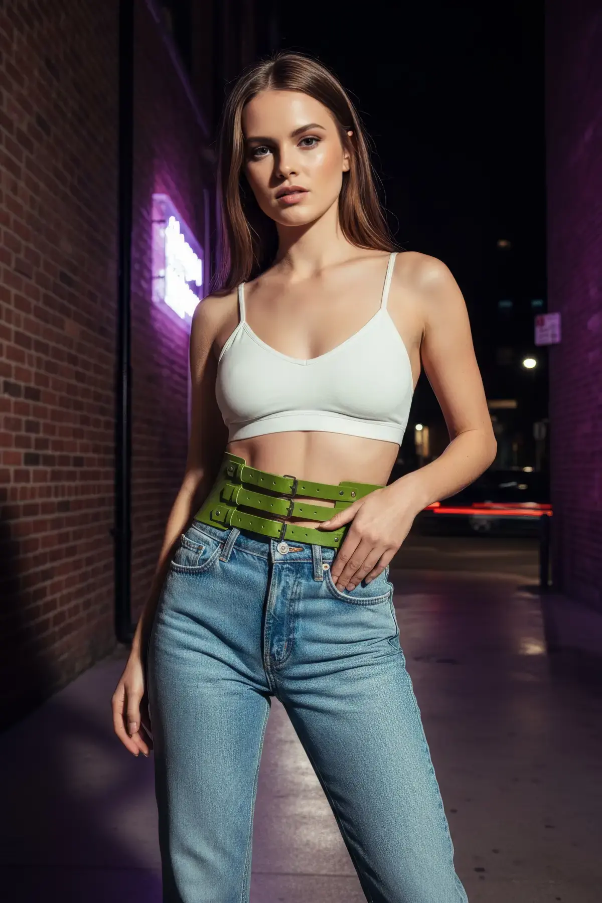 Haki Kadın Kemer Suni Deri Çoklu Şeritli Boyun Detaylı - APFT615