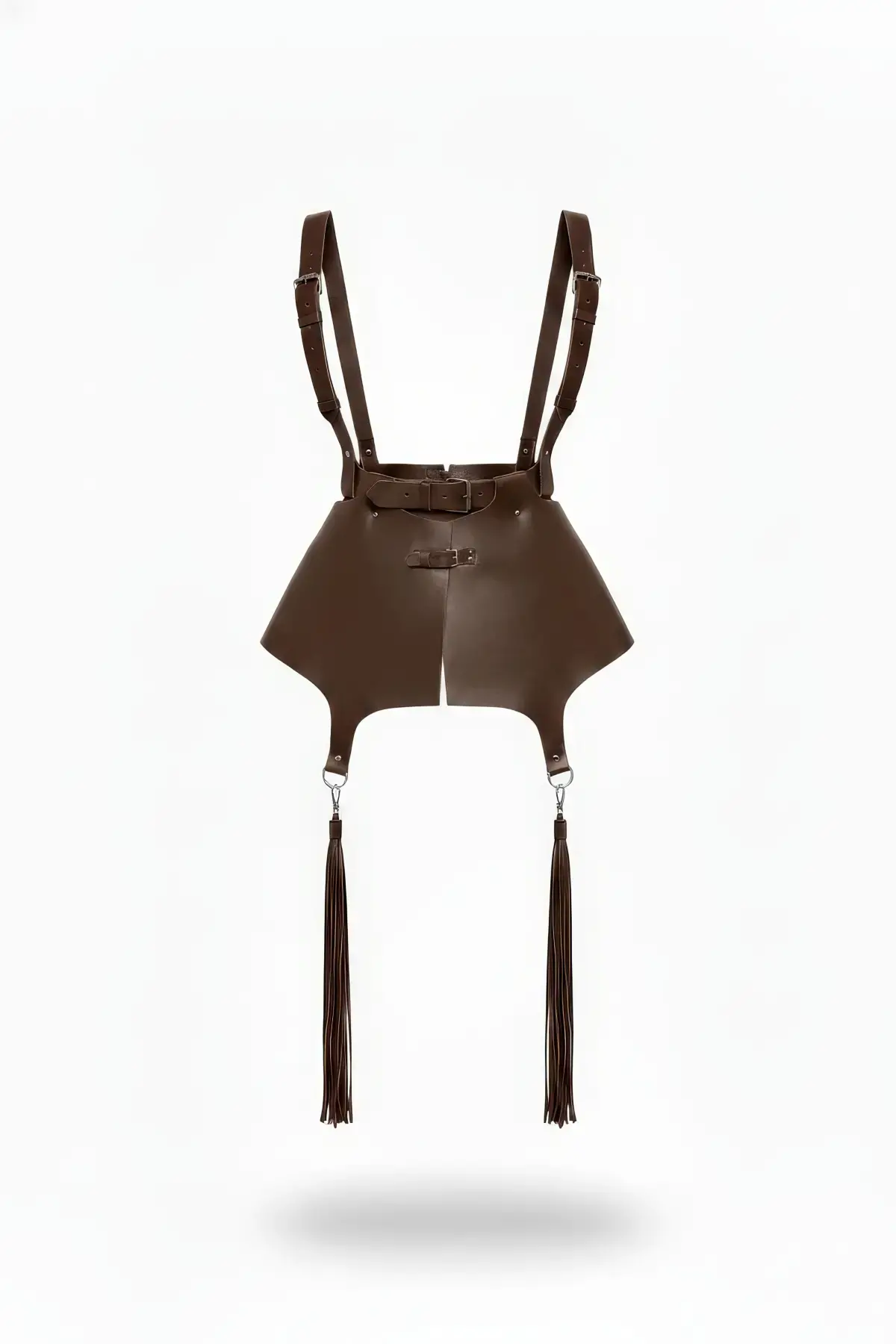 Kahverengi Etek Deri Omuzdan Bağlamalı Püsküllü Mini Etek - APFT787