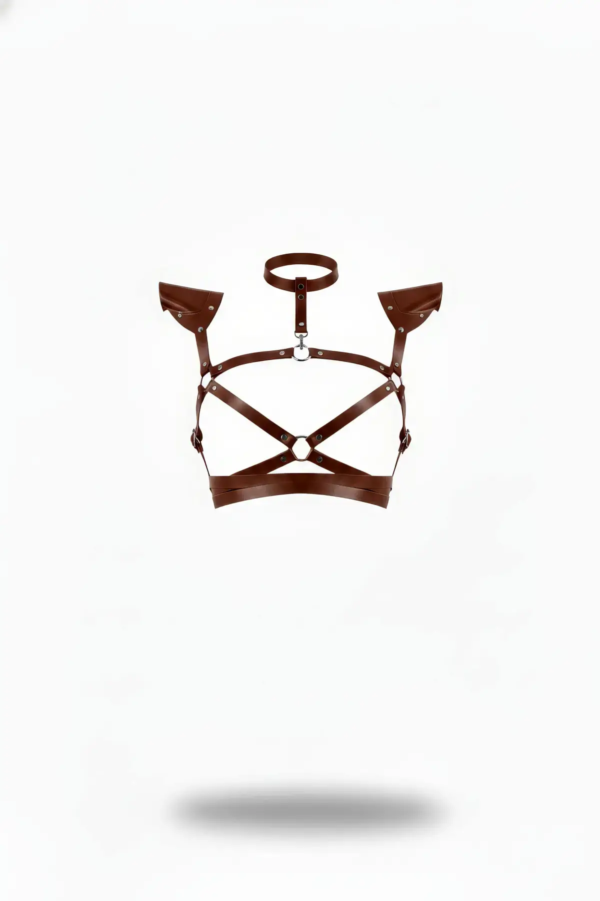 Kahverengi Kadın Kemer Deri Omuz Detaylı Vücut Harness - APFT996