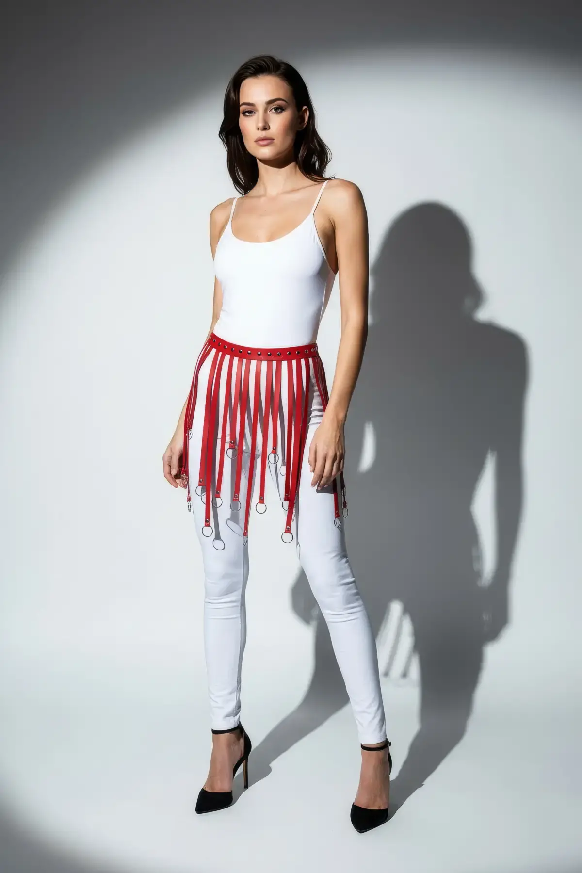 Kırmızı Etek Deri Halka Detaylı Etek Mini Etek Aksesuar - APFT579