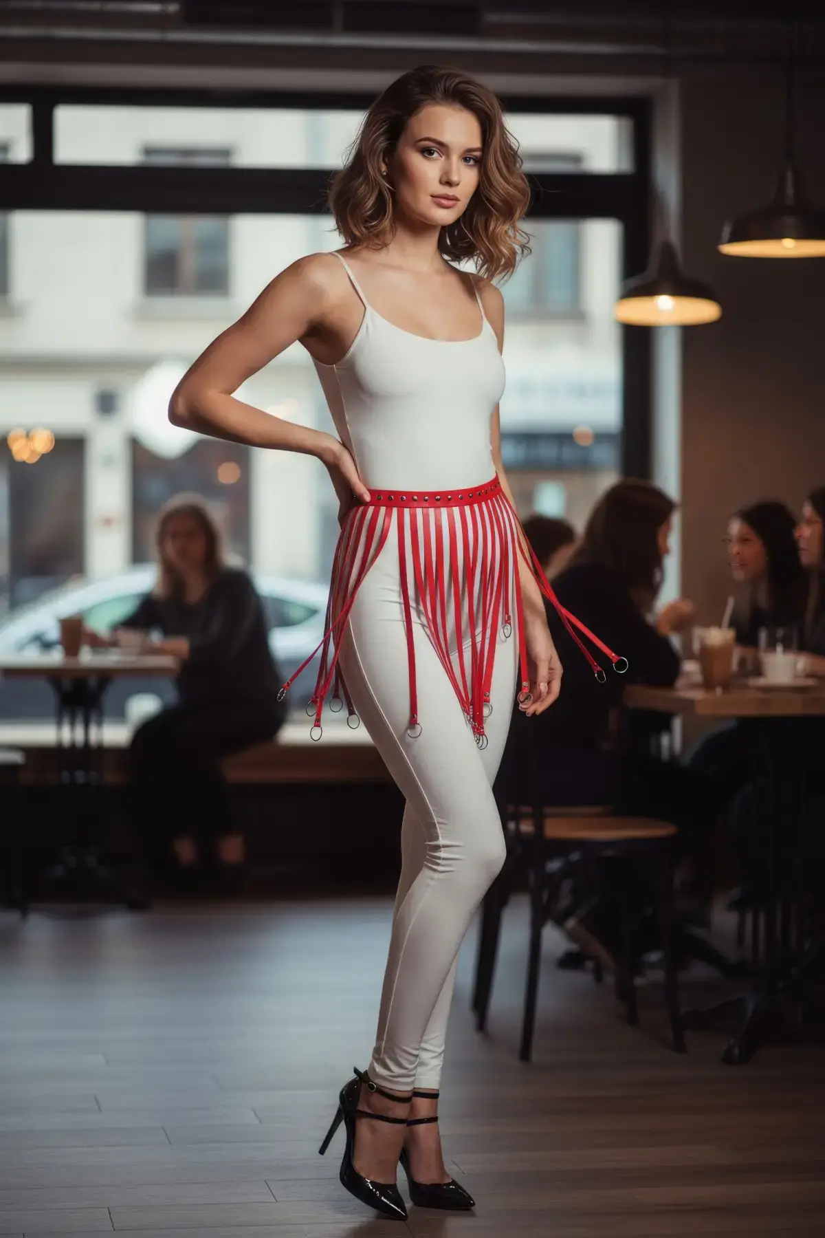 Kırmızı Kadın Kemer Deri Malzemeli Göğüs Ve Yaka Detaylı - APFT841