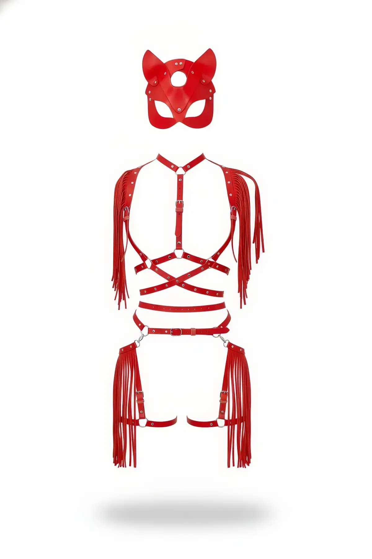 Kırmızı Etek Deri Püsküllü Vücut Aksesuarı Seti - APFT892