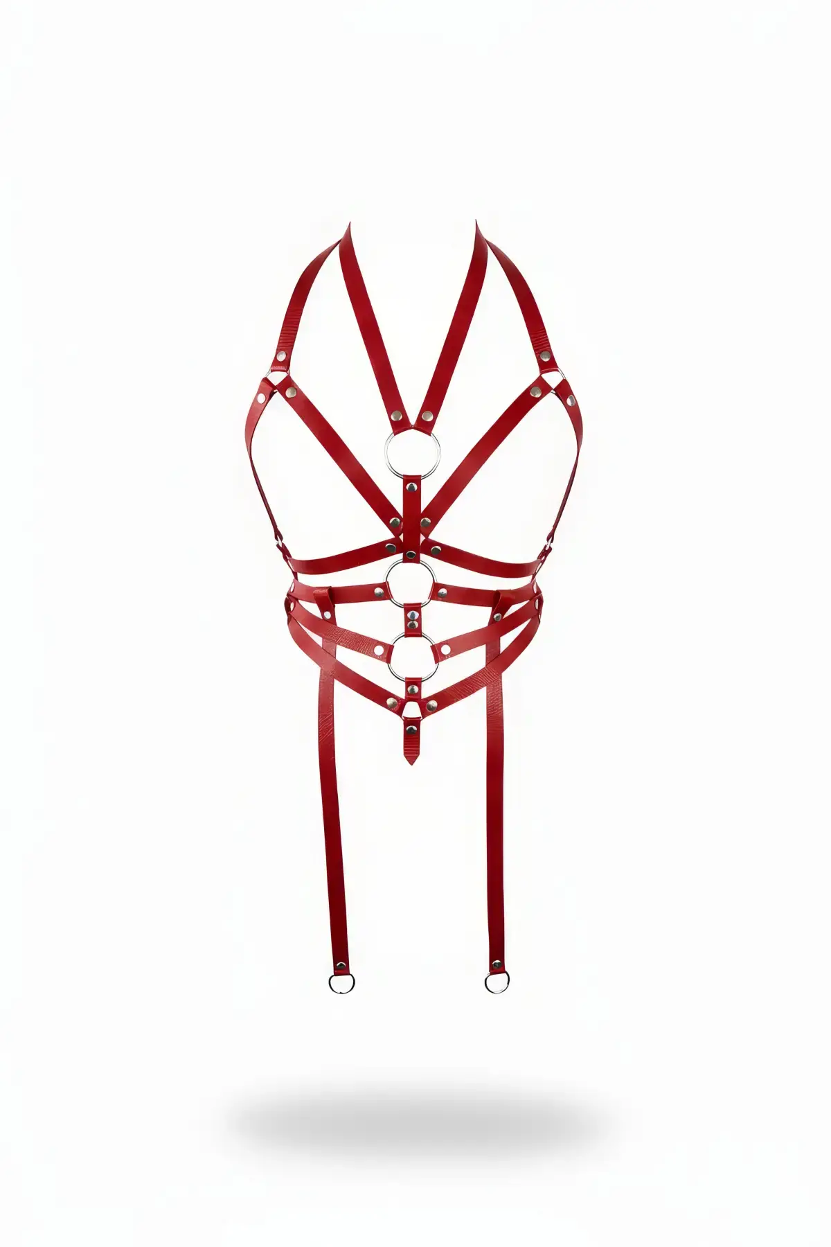 Kırmızı Göğüs Harness Deri Halka Detaylı Vücut Aksesuarı - APFT23