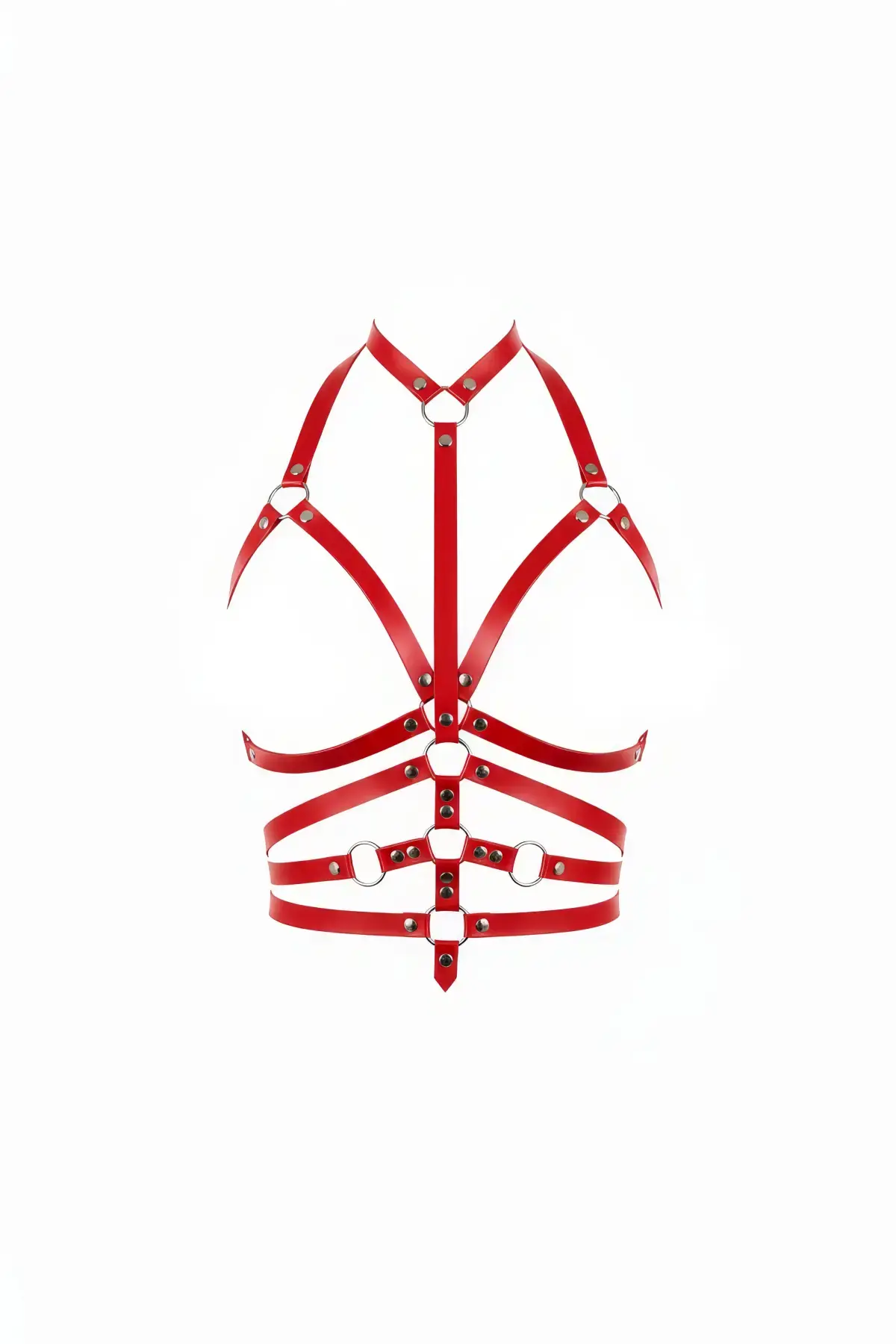 Kırmızı Göğüs Harness Deri Halka Detaylı Vücut Aksesuarı - APFT24