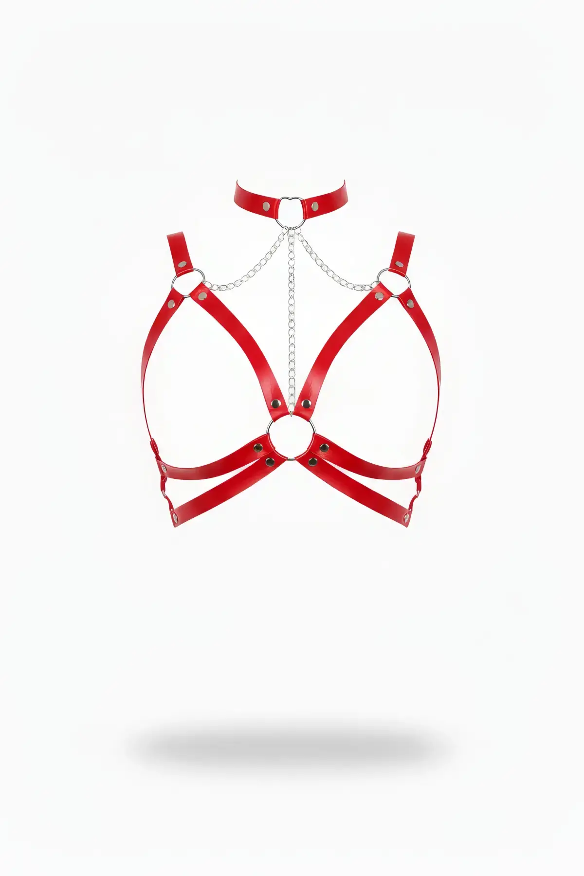 Kırmızı Göğüs Harness Deri Zincir Detaylı - APFT797