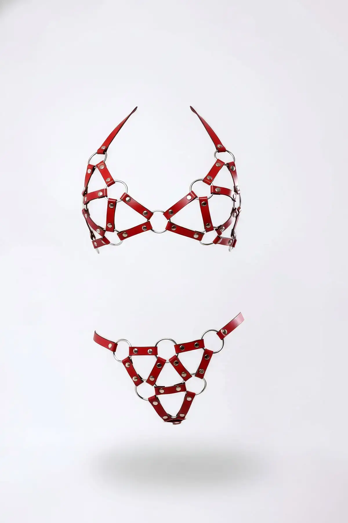Kırmızı Harness Takım Deri Metal Halka Detaylı - APFT422