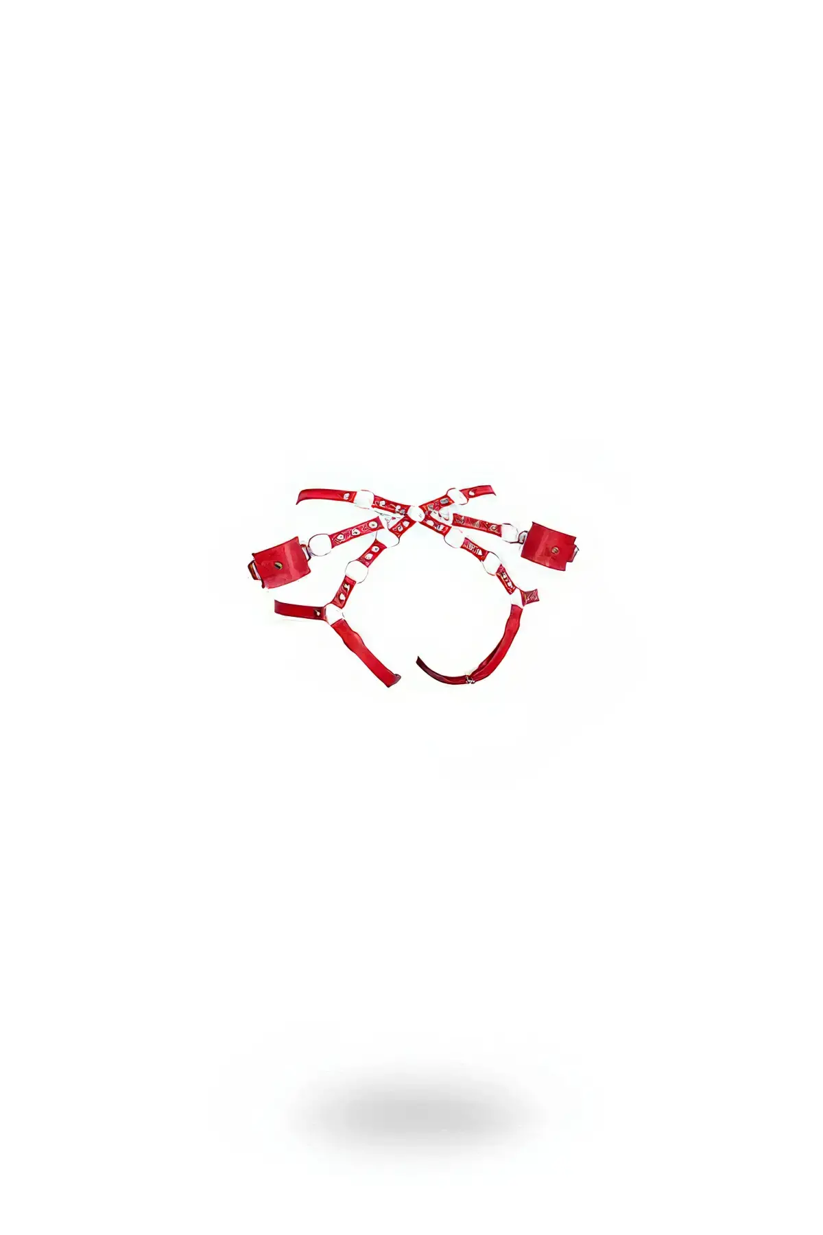 Kırmızı Harness Takım Parlak Deri Metal Halka Detaylı - APFT540