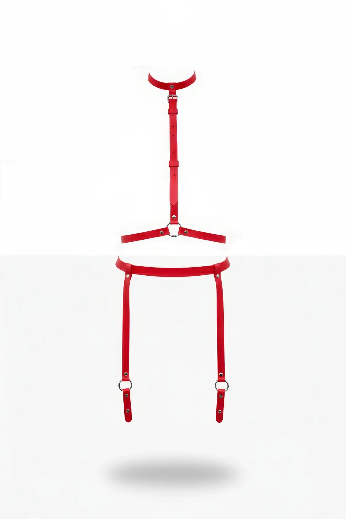 Kırmızı Harness Takım Suni Deri O Halka Detaylı Vücut Aksesuarı - APFT230