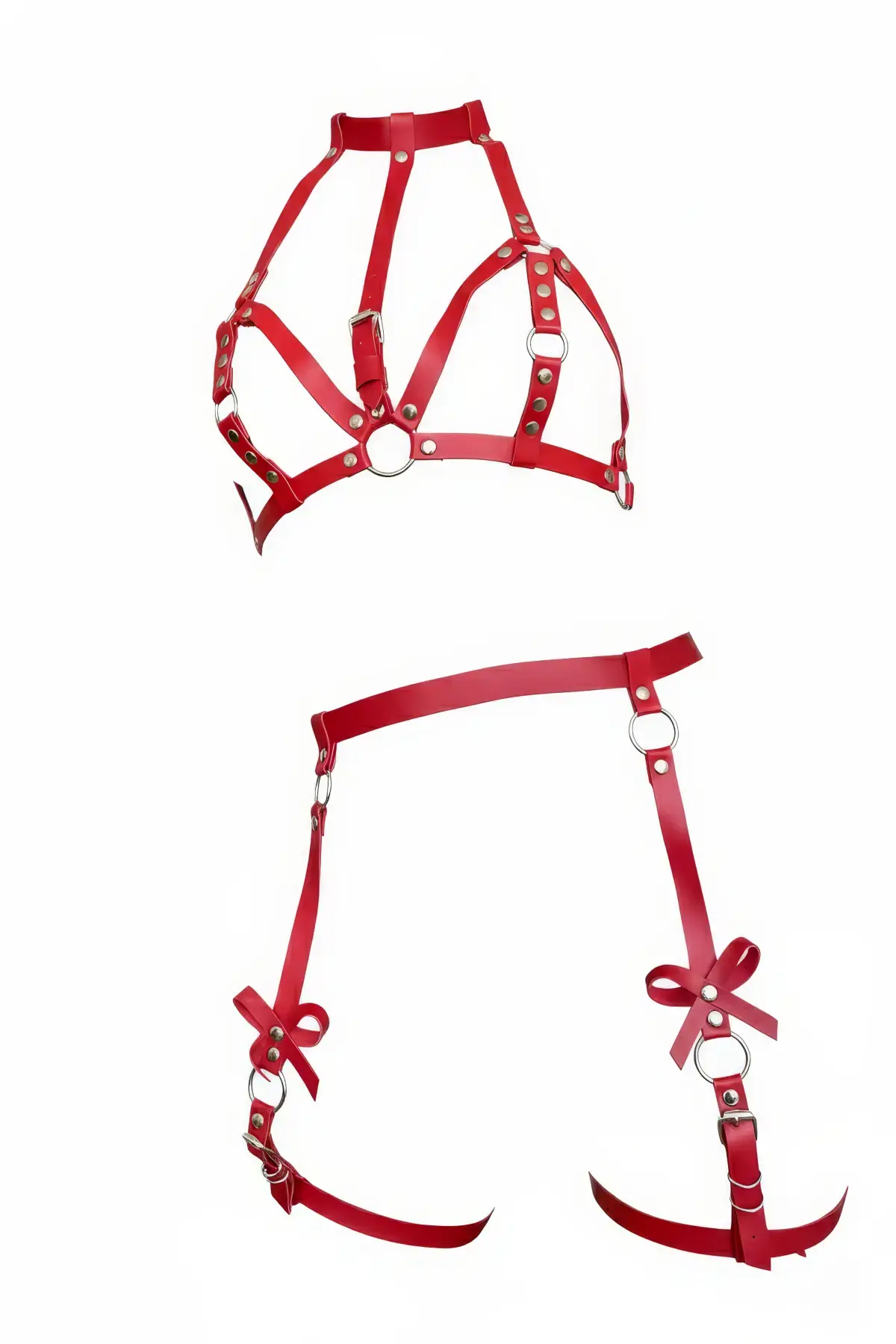 Kırmızı Jartiyer Harness Deri Yüksek Yaka Vücut Aksesuarı - APFT310