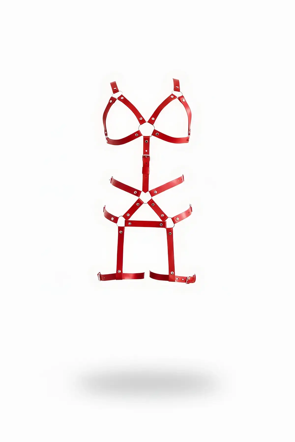 Kırmızı Jartiyer Harness Tam Beden Deri Metal Halka Detaylı - APFT750