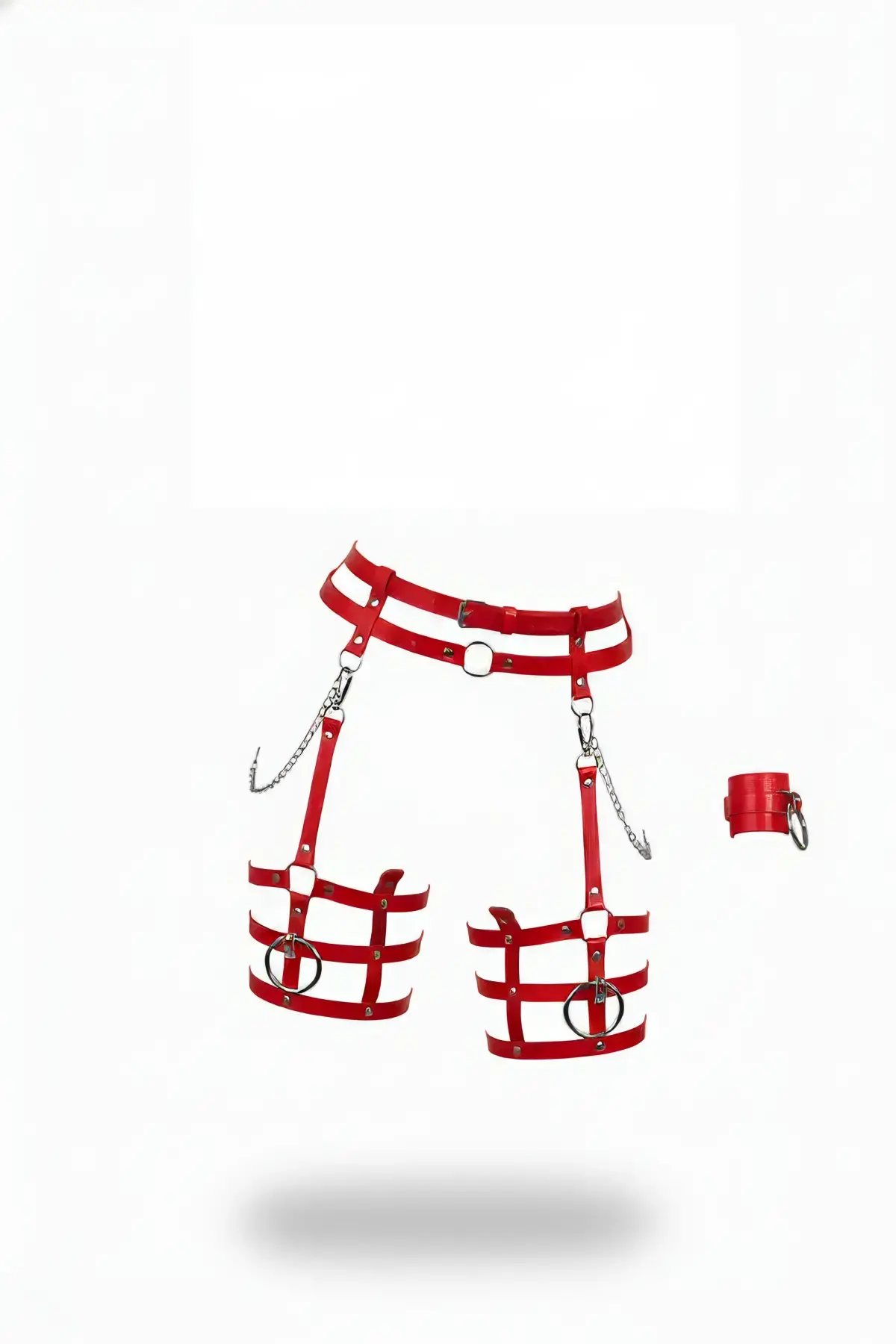Kırmızı Jartiyer Harness Zincir Detaylı Bacak Aksesuarı - APFT699
