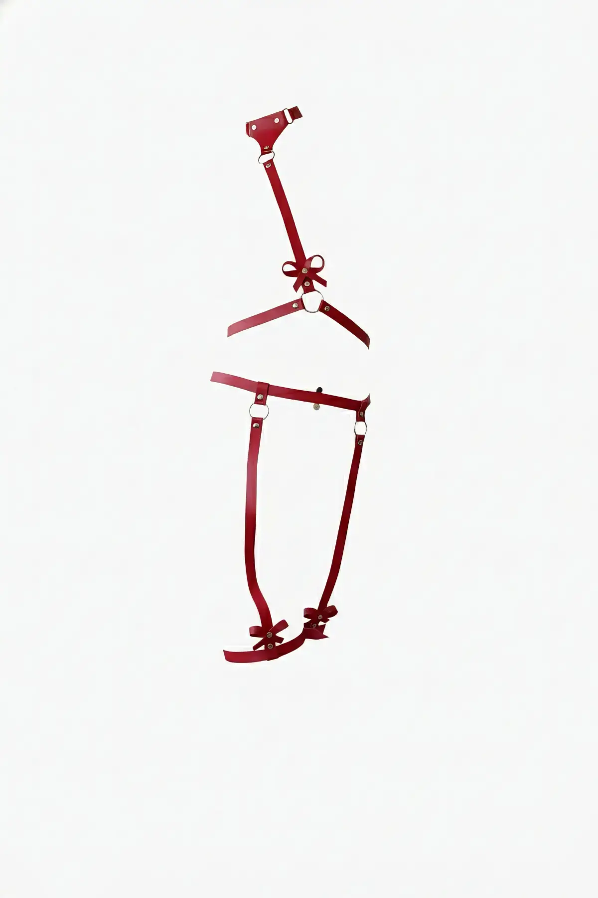 Kırmızı Kadın Harness Takım Fiyonk Detaylı Jartiyerli - APFT276