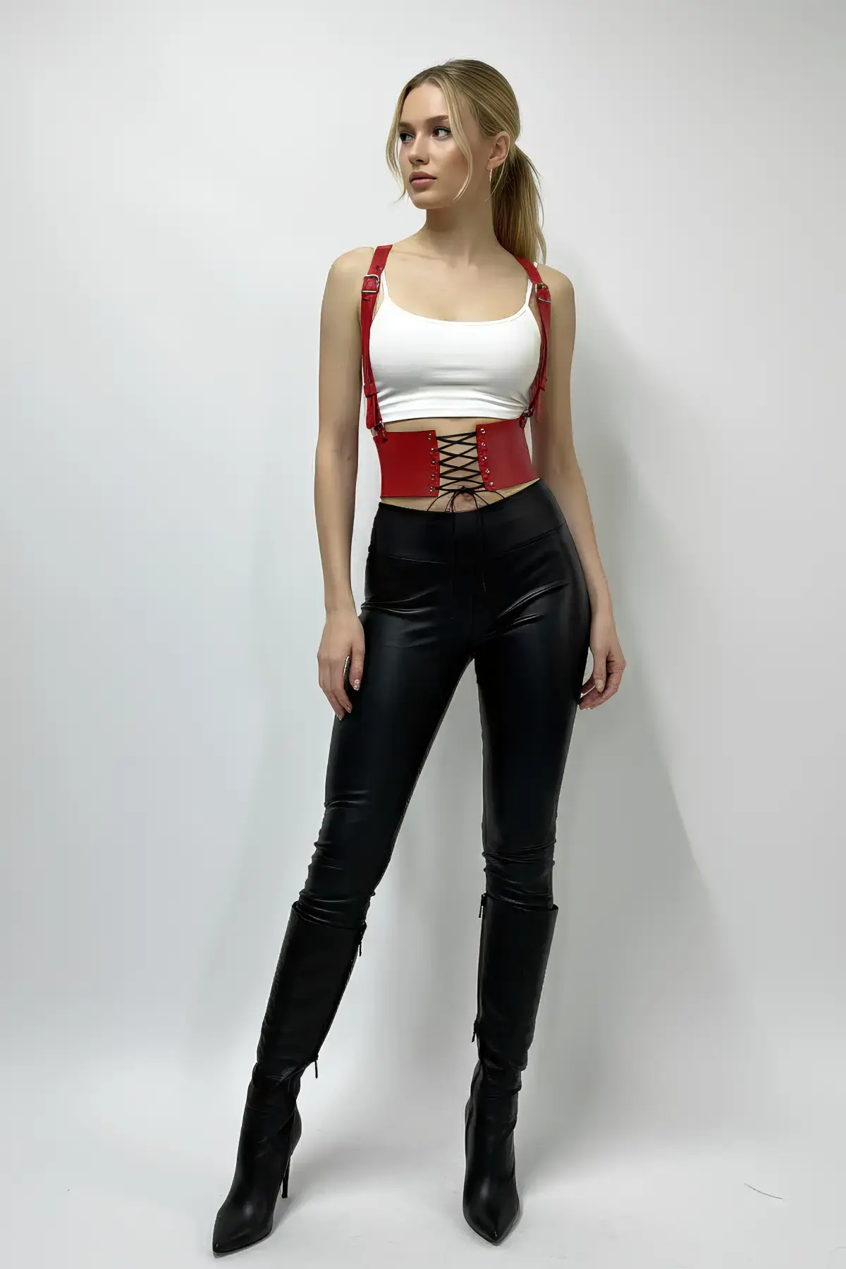 Kırmızı Kadın Kemer Bağcıklı Geniş Korse Bel Aksesuarı - APFT822