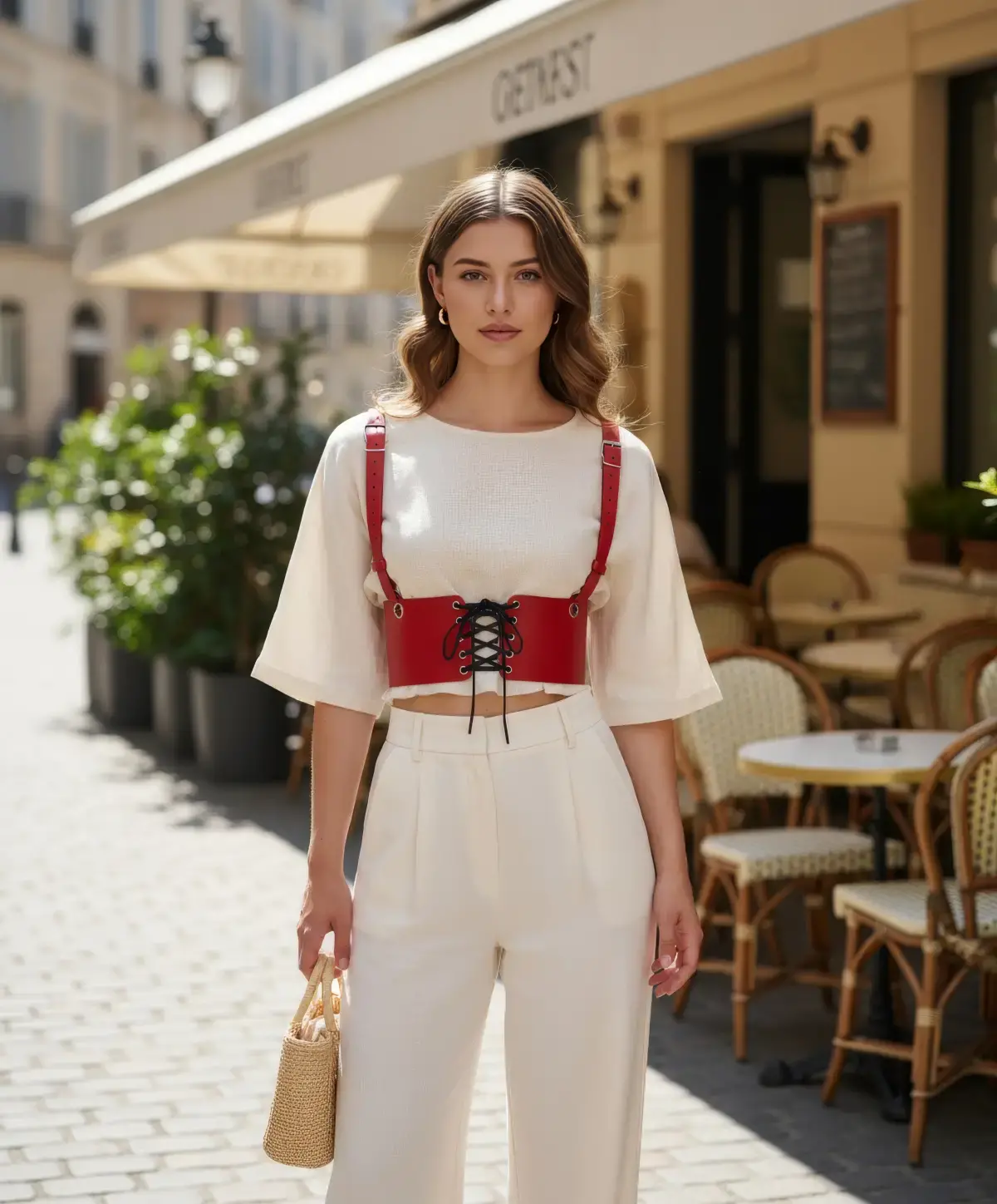 Kırmızı Kadın Kemer Bağcıklı Korse Bel Aksesuarı - APFT1429