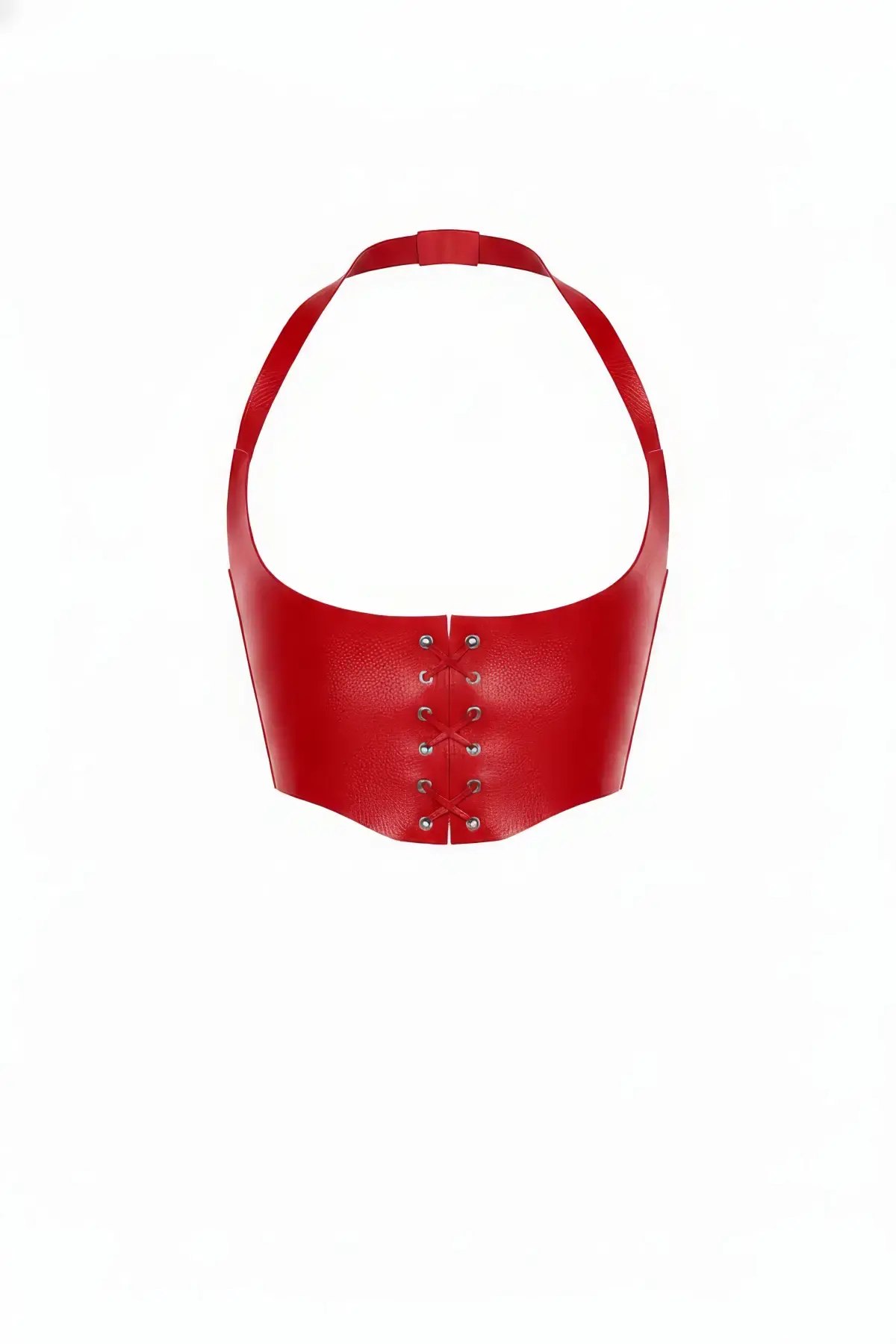 Kırmızı Harness Takım Deri Jartiyer Detaylı Metal Halkalı - APFT228