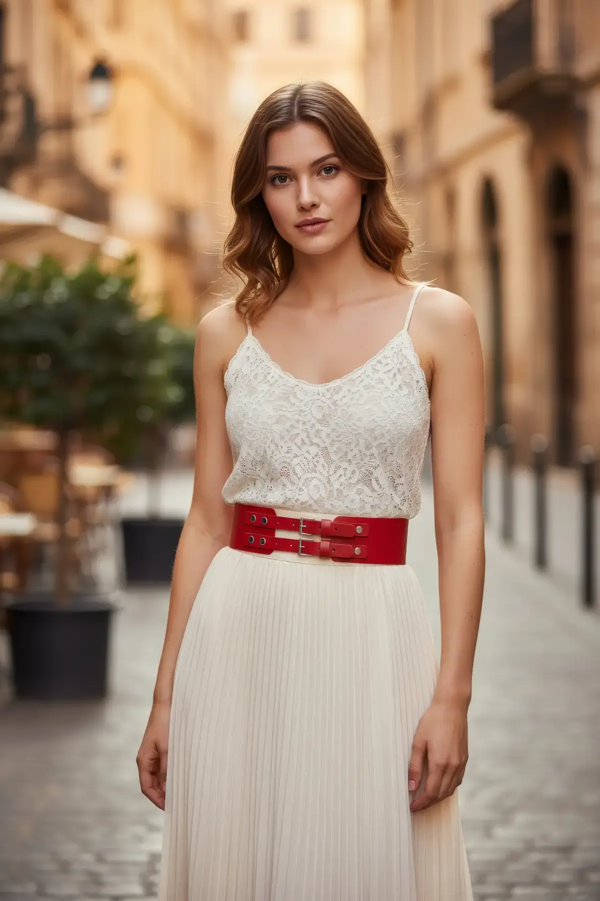 Kırmızı Kadın Kemer Geniş Korse Bel Aksesuarı - APFT1112