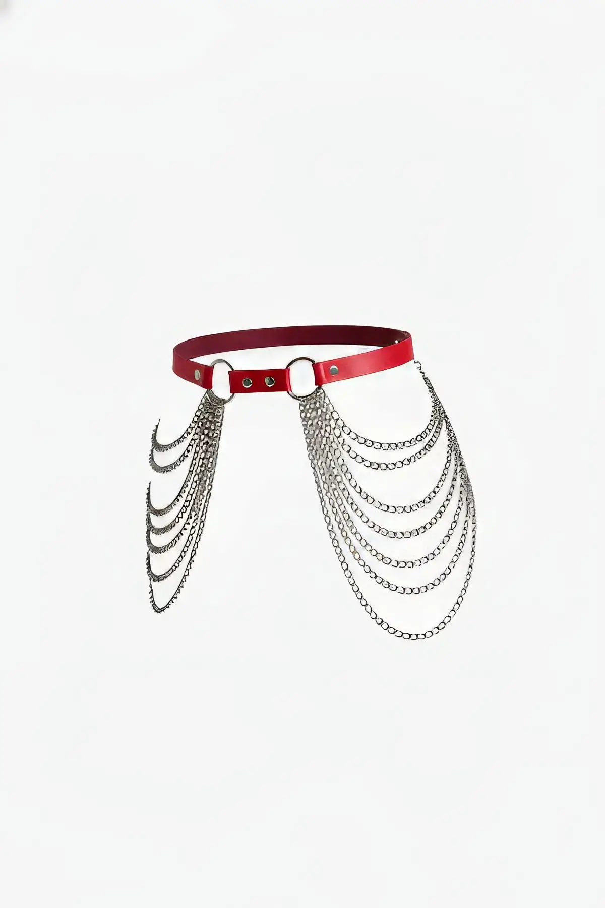 Kırmızı Kadın Kemer Çoklu Zincir Detaylı Bel Aksesuarı - APFT738