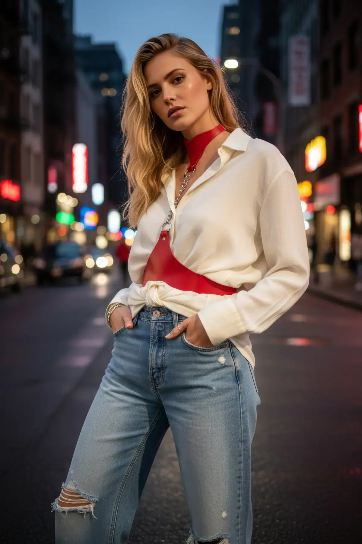 Kırmızı Kadın Kemer Deri Boyunluklu Zincir Detaylı - APFT1265