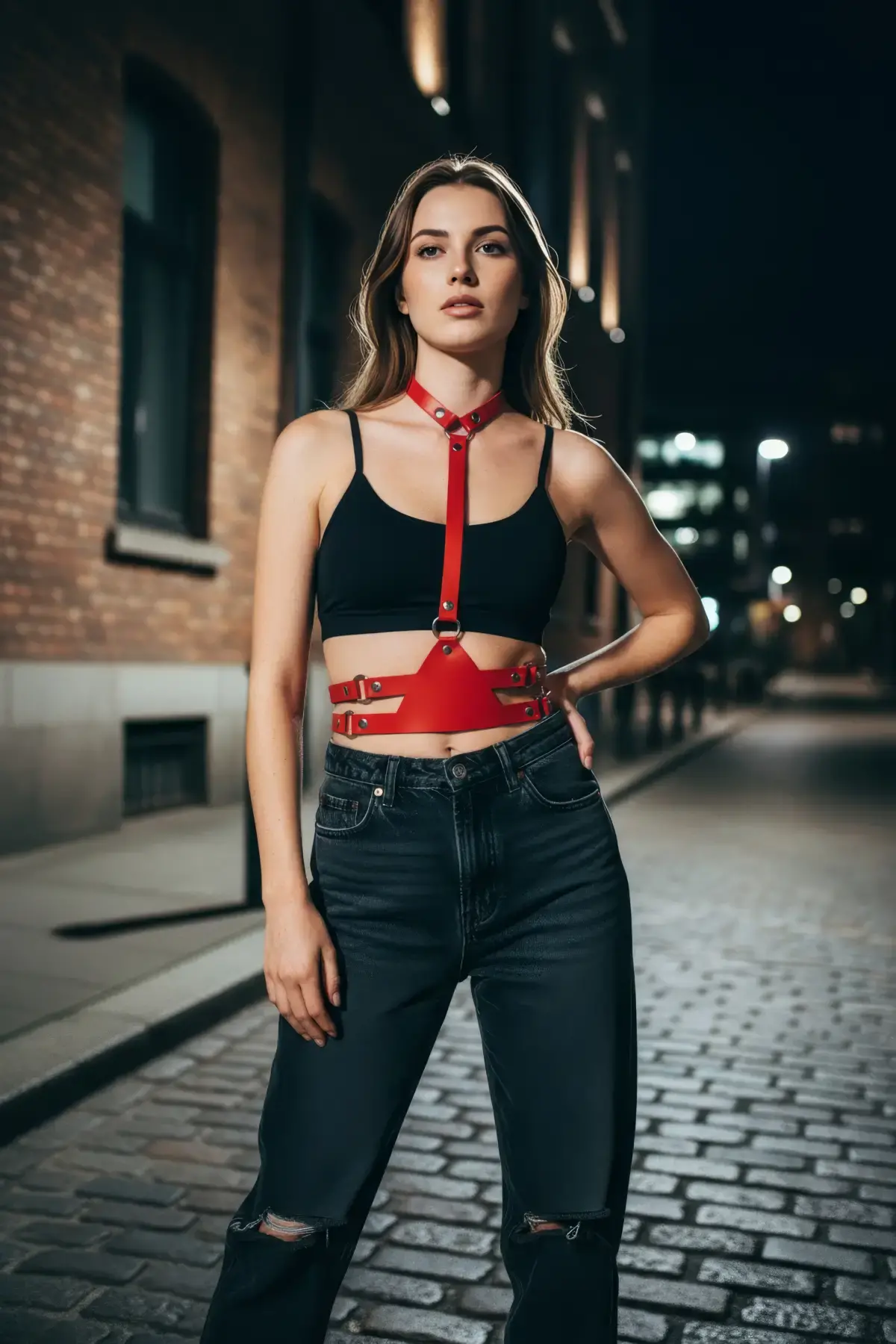 Kırmızı Kadın Kemer Deri Çoklu Tokalı Gövde Aksesuarı - APFT17