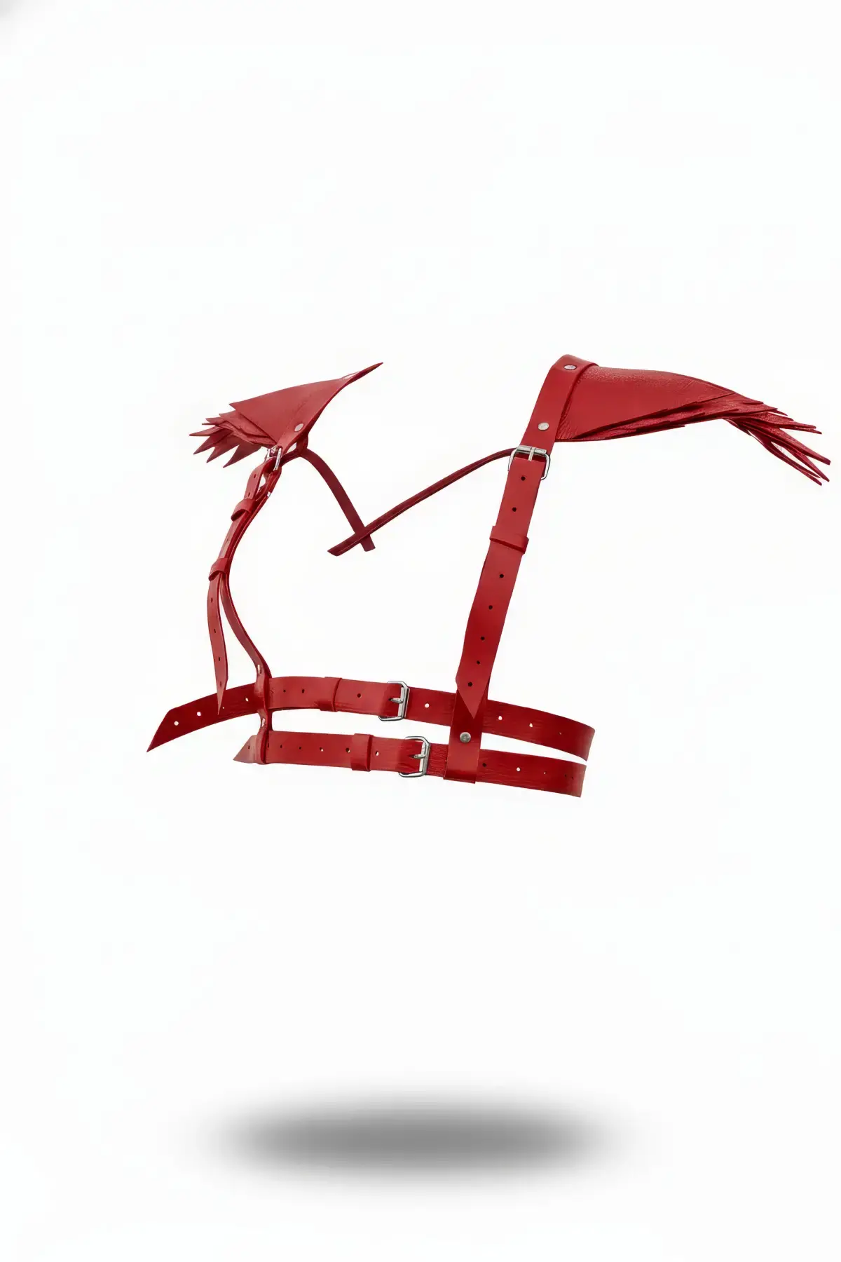 Kırmızı Harness Takım Deri Çoklu Kemerli Boyunluk Detaylı - APFT869