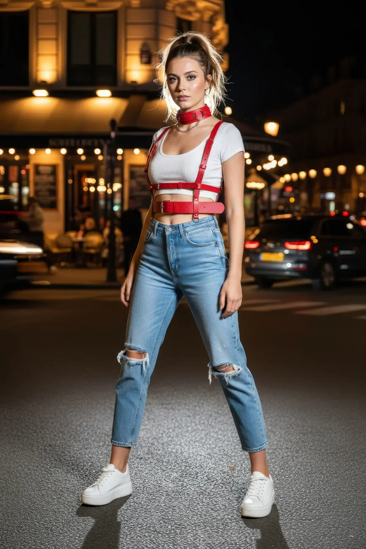 Kırmızı Kadın Kemer Deri Vücut Aksesuarı Tokalı Yelek - APFT959