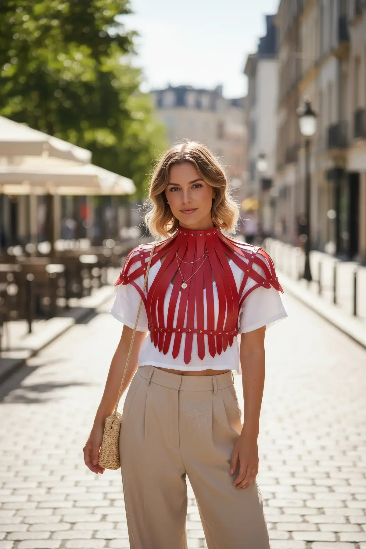 Kırmızı Kadın Kemer Deri Omuz Detaylı Vücut Aksesuarı - APFT966