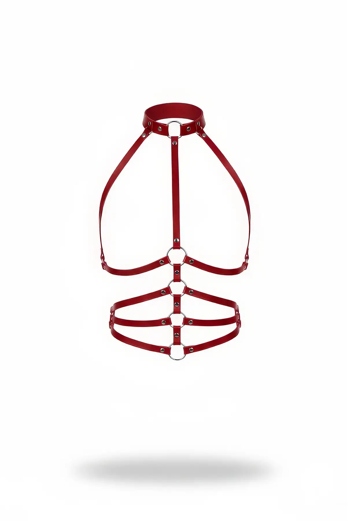 Bordo Harness Takım Deri Tokalı Yüksek Yaka Vücut Aksesuarı - APFT1089