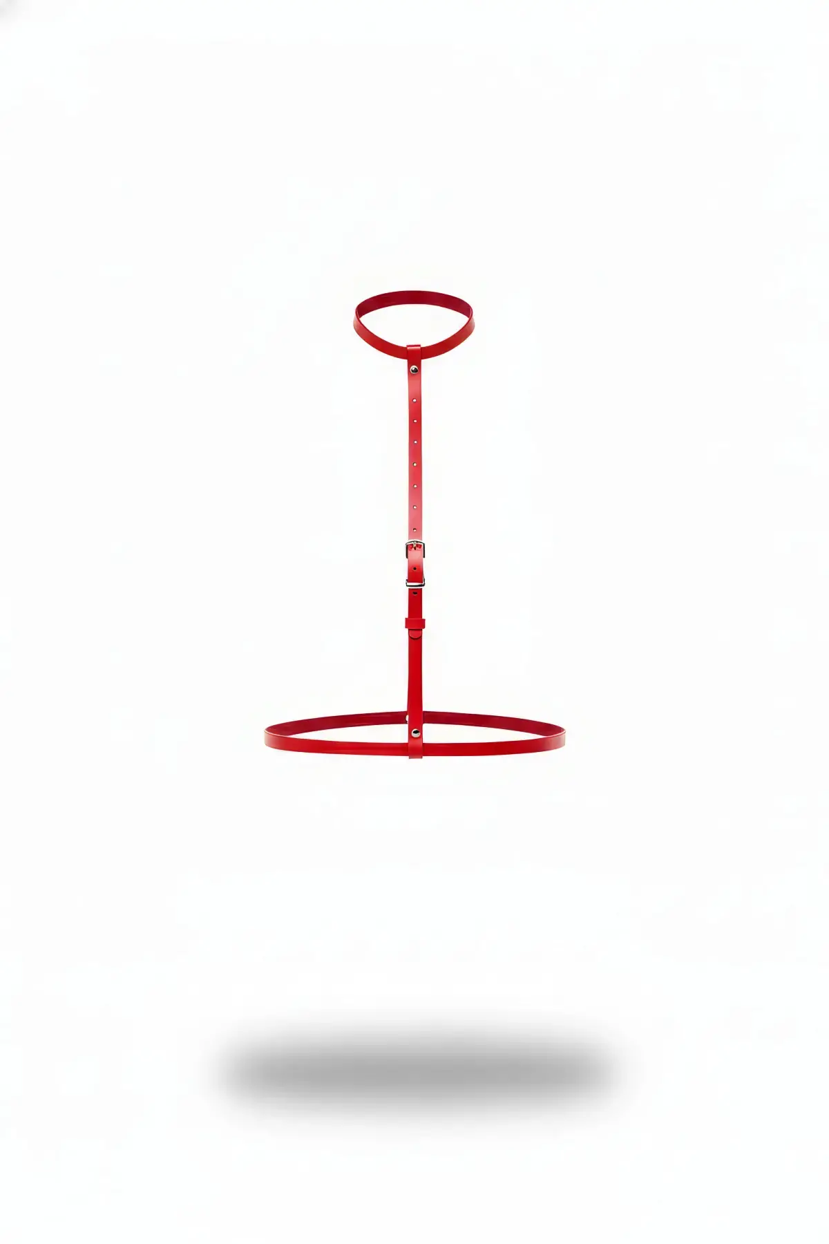 Kırmızı Jartiyer Harness Deri Zımba Detaylı Bacak Aksesuarı - APFT129